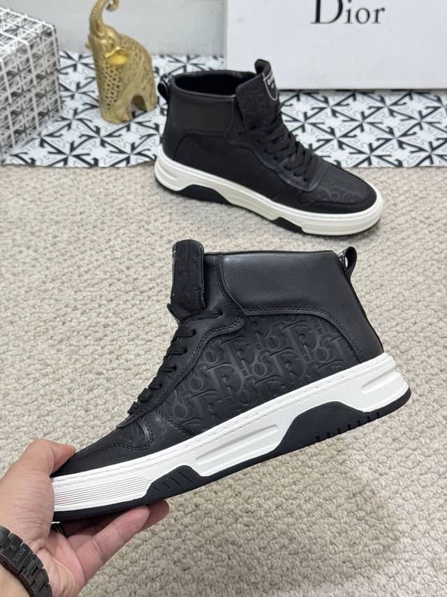 Factory direct price men's sports shoes, original quality - Dior sports shoes official website latest casual fashion high-top men's shoes, popular style, simple and stylish design, exclusive for trendy men. Unique official website latest brand elements and original decorations, imported cowhide with classic materials, fashionable and generous accessories, sheepskin lining, wear-resistant casual outsole. Size: 38-44 45 Customized