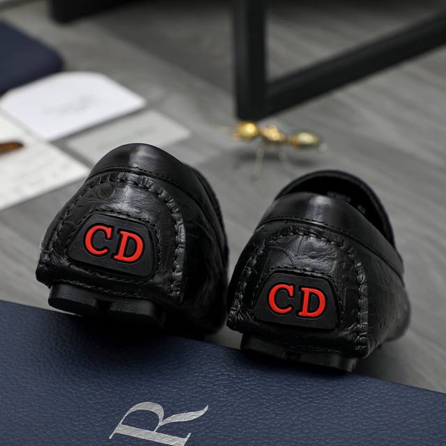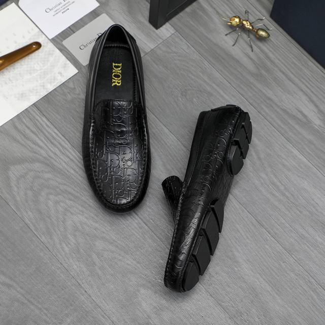 Factory direct price product trademark: Dior casual slip-on men's shoes. True to size: 38-44. Material: Selected embossed cowhide upper, sheepskin lining, rubber outsole.