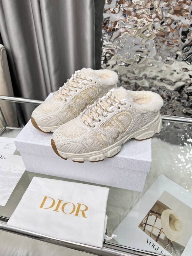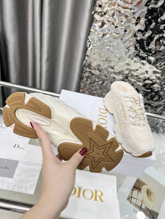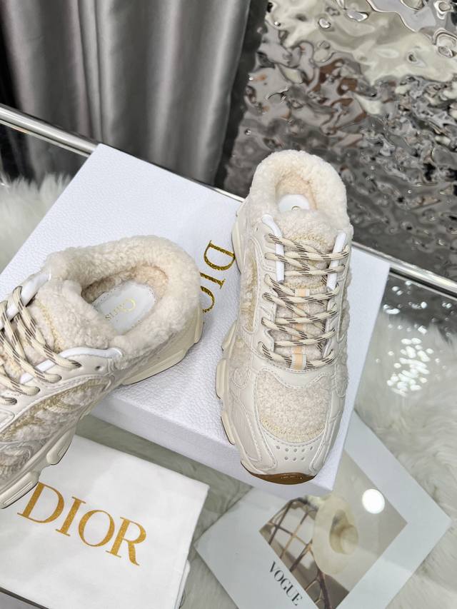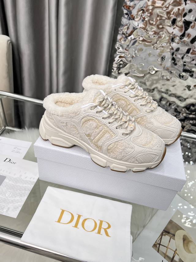 Factory direct price women's shoes and athletic shoes original single item. This Dior Chrono athletic shoe reinterprets the running shoe with Dior's haute couture style. Beige terry cloth-effect technical fabric is paired with leather-effect panels, adorned with classic details to showcase style, including the embroidered Cd logo on the side, a star patch on the tongue, and the Dior logo on the heel. It features two-tone laces, a lightweight sole with a star pattern, and can be styled for a casual look year-round. Price: P Lining: Wool Sizes: Women's 35-41, 35-42 (custom sizes available) Colors: