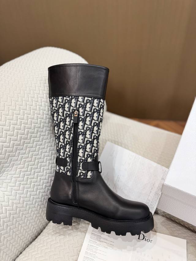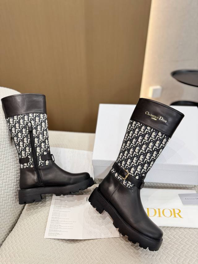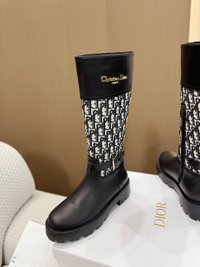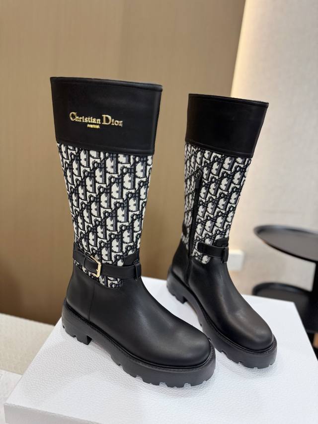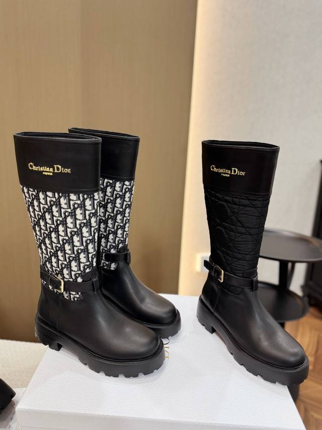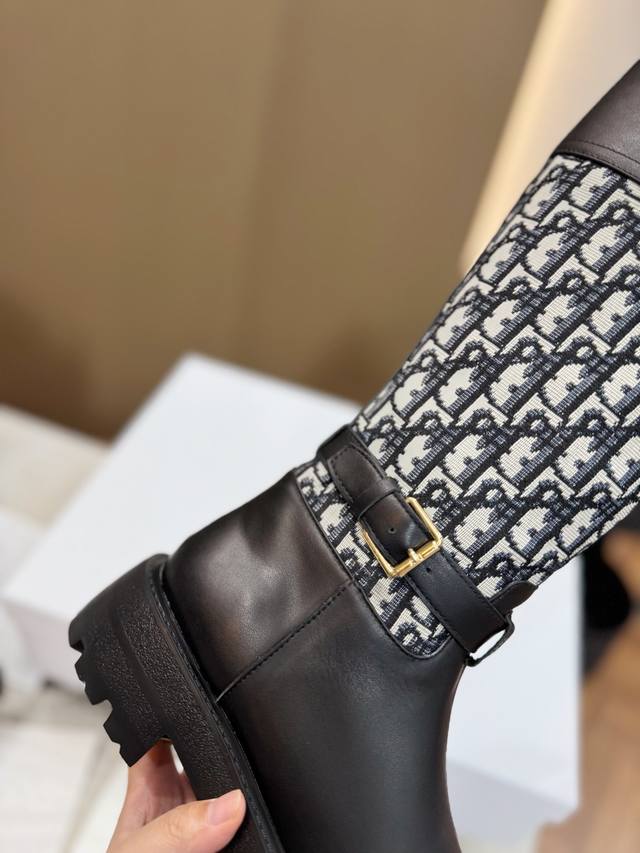 Dior 25Ss, unique design concept, British style brogue riding boots. Original development, versatile and slimming, three-dimensional and full shape. Novel design style, perfect and cool details. The top is decorated with a two-tone original electroplated "Christian Dior" logo. Adjustable nylon strap with "Cd" logo. The ankle is wrapped with a technical fabric strap with electroplated Cd ring. Comfortable, luxurious and high-end, showing the temperament of a lady.