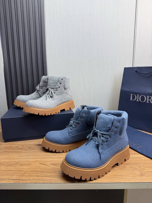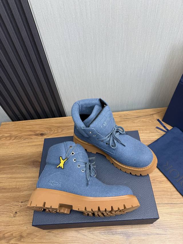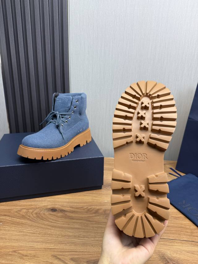 Factory p Dior's latest Fall/Winter hot-selling men's boots are a new addition to the collection, continuing Dior's classic style. The upper is made of original fabric, paired with an original non-slip, wear-resistant rubber outsole. The heel and cuff feature signature brand details, enhancing the overall style. Stylish and versatile, they can be paired with jeans or casual trousers for a relaxed look. Size: 38-44, 45 (custom orders available).