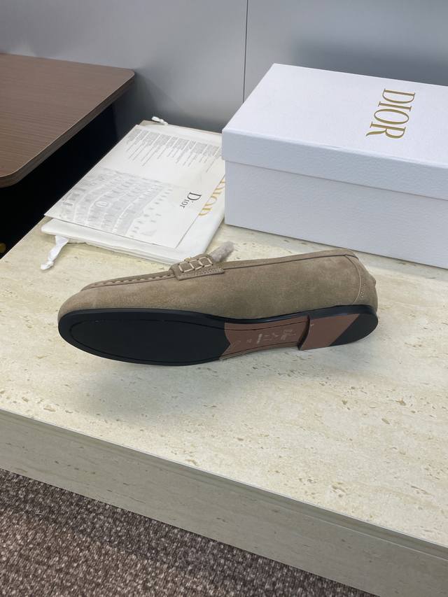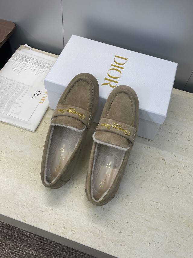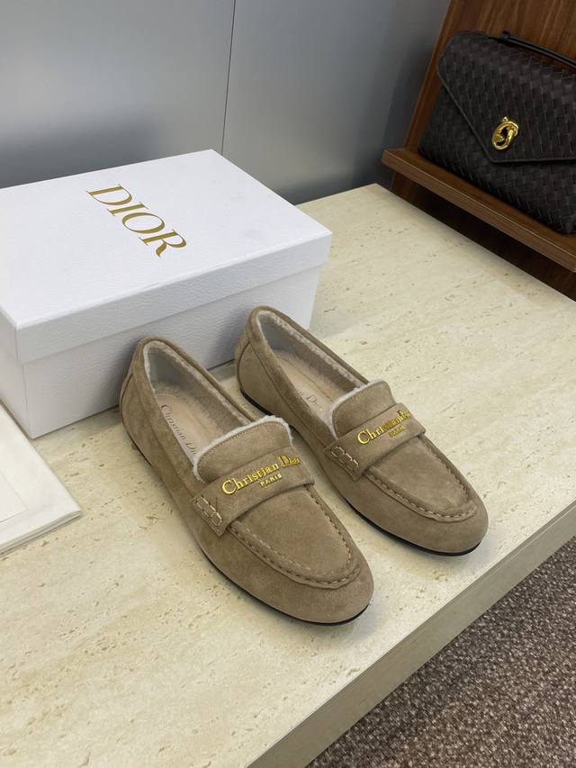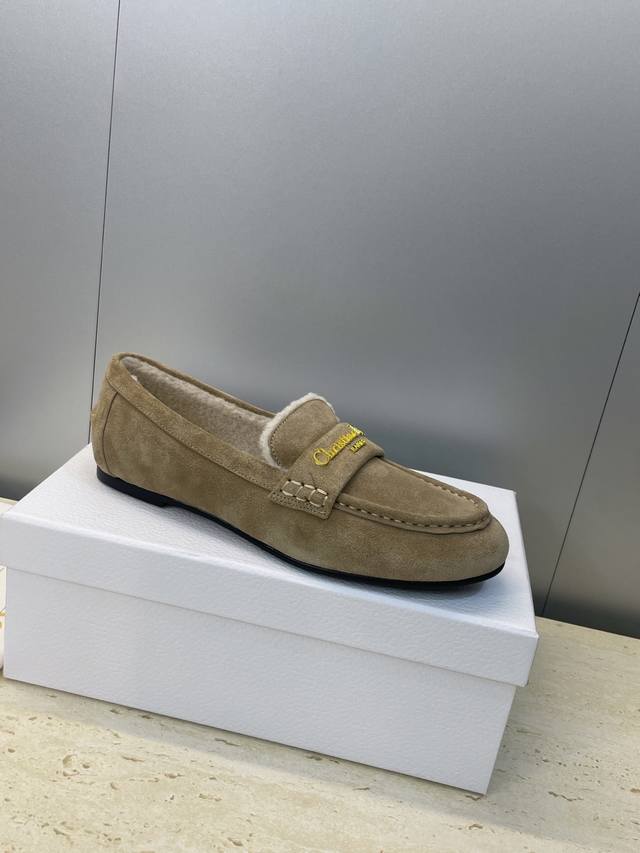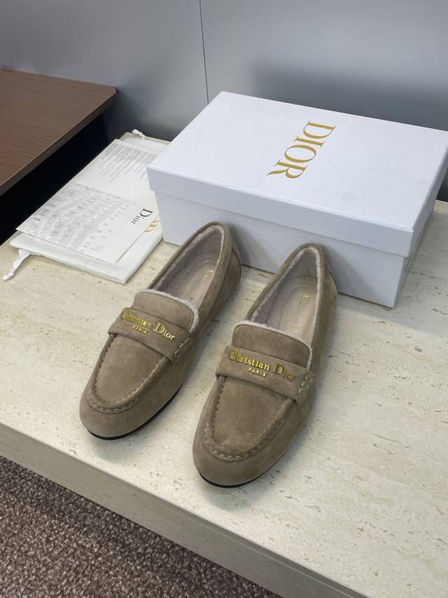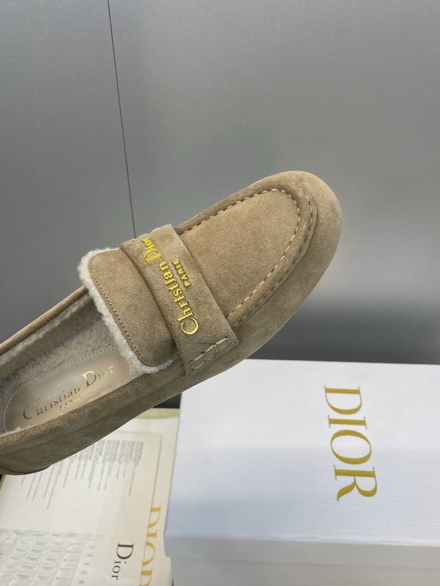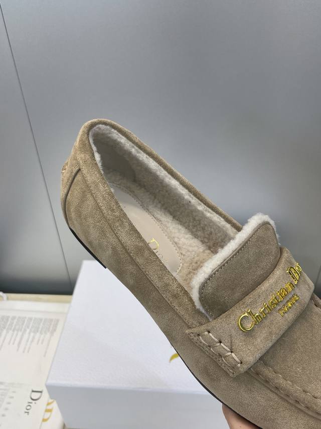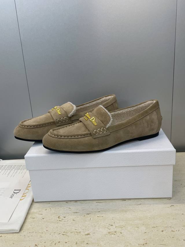 Factory Price Dior 2025 Autumn/Winter New D-Boy Haute Couture Series D-Alps Flat Round Toe Ballet Doll Women's Shoes Cd Letter Logo Hardware Buckle Fashion Color Block Casual Cold-proof Warm Lamb Wool Loafers