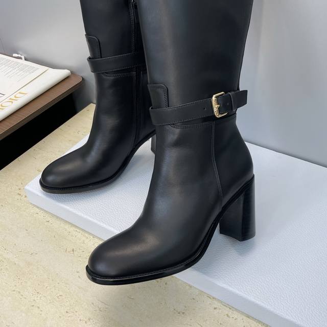 Factory Price Dior 2025 Autumn/Winter New D-Town Series Punk Style Chunky Heel Women's Boots Celebrity Style Cd Logo Hardware Buckle Motorcycle Knee-High Boots High Heel Round Toe Slip-on Rider High Boots Material: Imported calfskin upper, imported suede + water-dyed cowhide lining insole + Italian genuine leather outsole + original mold hardware buckle Heel height: 8cm Size 36 data shaft height 38cm shaft circumference 33cm Size increments by 0.5cm Size: 35-41 Standard size 40.41 Custom sizes are non-refundable and non-exchangeable
