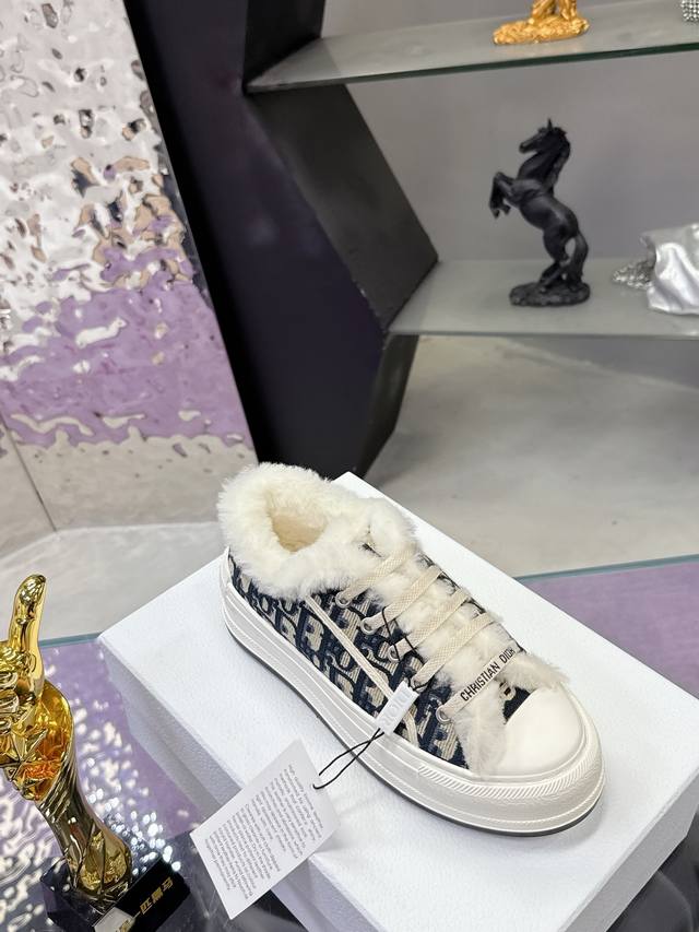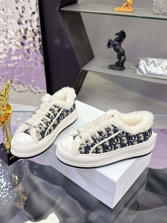 Factory Price: DDD 'Dior Monogram Embroidery DDD Wool Platform Canvas Shoes Casual Sneakers This Walk'n'Dior platform sneaker is a stylish item that elevates the collection. Oblique printed cotton embroidered upper, paired with a comfortable platform sole, tongue, and Christian Dior Paris logo laces DDD 4.5cm platform DDD Size: Women's 35-41 42 (Custom sizes available) DDD