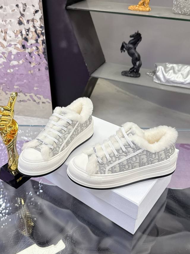 Factory Price: DDD 'Dior Monogram Embroidery DDD Wool Platform Canvas Shoes Casual Sneakers This Walk'n'Dior platform sneaker is a stylish item that elevates the collection. Oblique printed cotton embroidered upper, paired with a comfortable platform sole, tongue, and Christian Dior Paris logo laces DDD Sole thickness 4.5cm DDD Size: Women's 35-41 42 (Custom sizes available) DDD