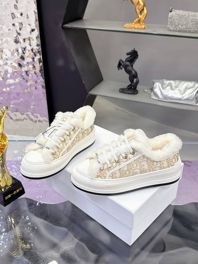 Factory Price: DDD 'Dior Monogram Embroidery DDD Wool Platform Canvas Shoes Casual Sneakers This Walk'n'Dior platform sneaker is a stylish item that elevates the collection. Oblique printed cotton embroidered upper, paired with a comfortable platform sole, tongue, and Christian Dior Paris logo laces DDD Sole thickness 4.5cm DDD Size: Women's 35-41 42 (Custom sizes available) DDD