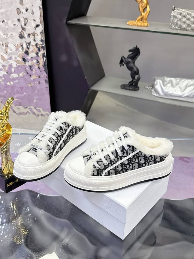 Factory Price: DDD 'Dior Monogram Embroidery DDD Wool Platform Slip-on Canvas Shoes Casual Sneakers This Walk'n'Dior platform sneaker is a stylish item that elevates the style of the collection. Oblique printed cotton embroidered upper, paired with a comfortable platform sole, tongue, and Christian Dior Paris logo laces DDD Sole thickness 4.5cm DDD Size: Women's 35-41 42 (Custom sizes available) DDD