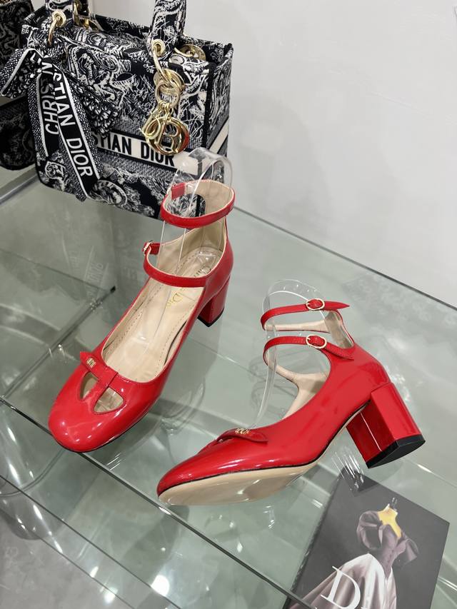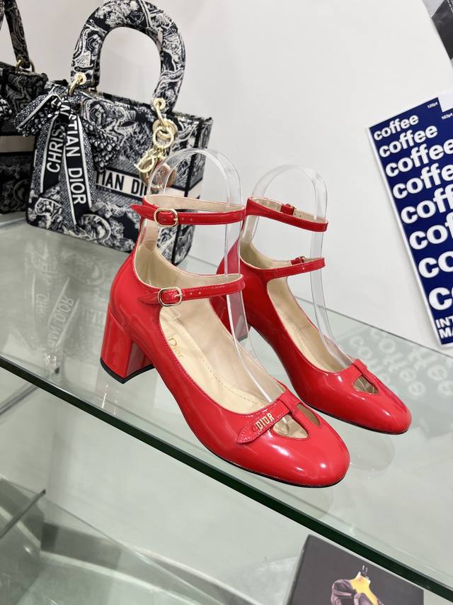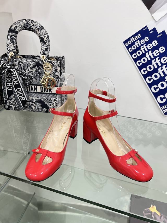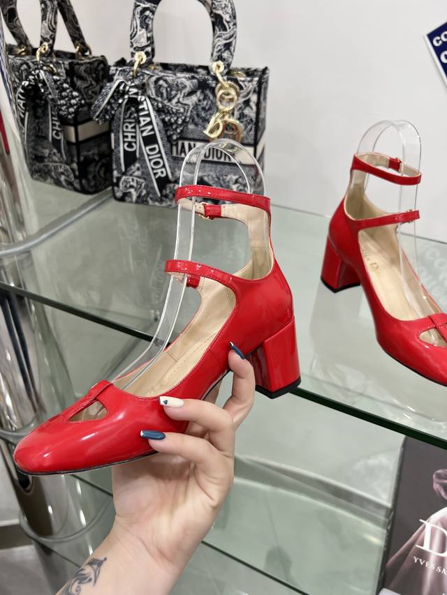 Factory price DDD Dior Summer New French Retro Fashion Hollow Double Buckle Chunky Heel Mary Jane Shoes Women's Cd Letter Logo Hardware Buckle Square Toe Retro Women's Single Shoes Top-of-the-line High-end Version DDD Material: Imported patent leather upper, water-dyed sheepskin lining + Italian genuine leather outsole DDD Heel height: 3.5 6.5 DDD Colors: Bright red, black, apricot, beige, white, four colors available on the official website DDD Size: 34-43 34 40 41 42 43 Customized, no returns or exchanges DDD