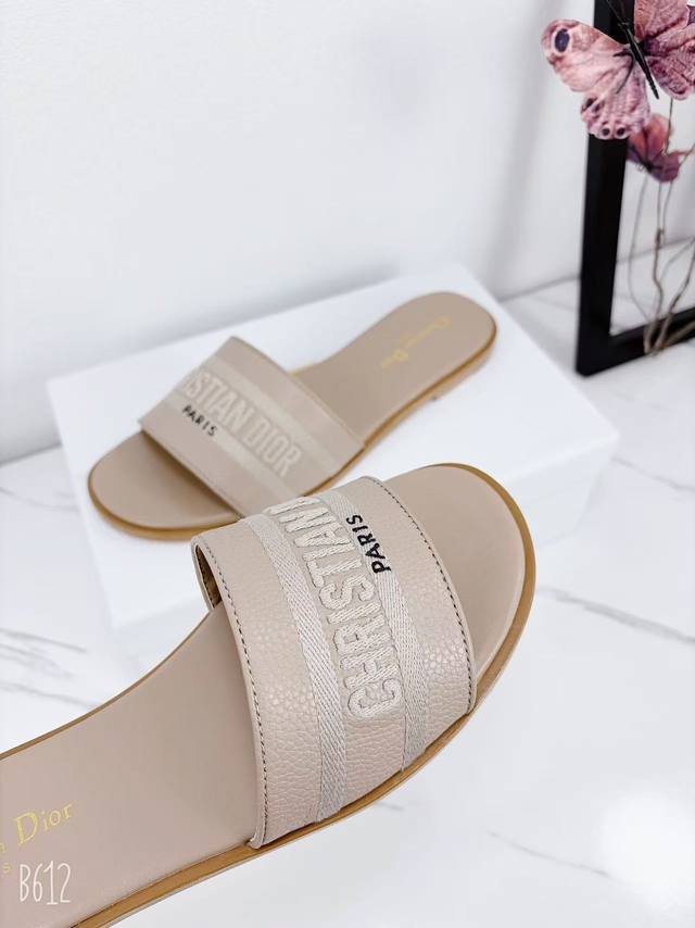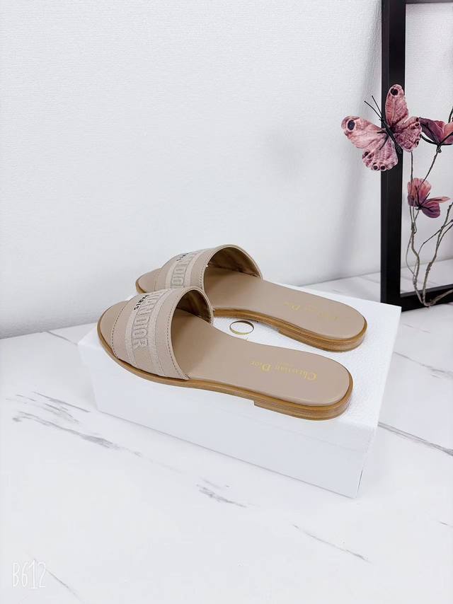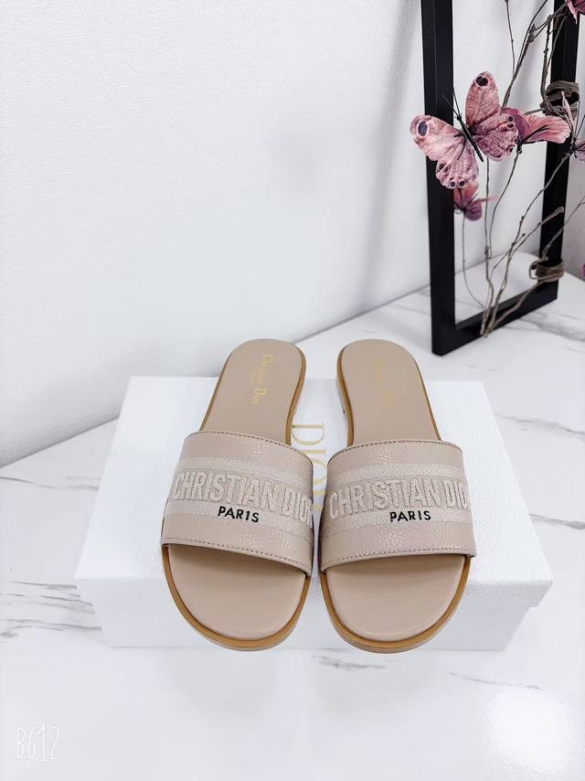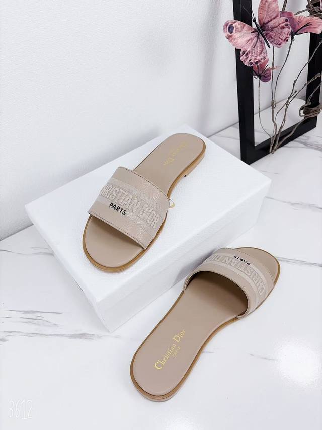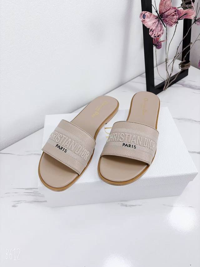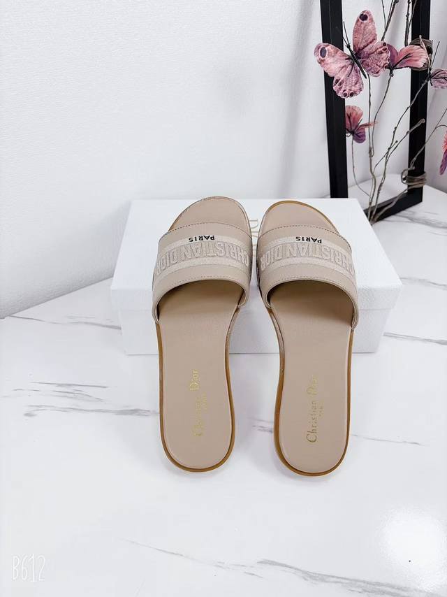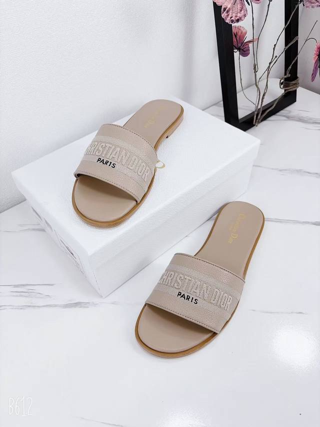 Factory price flat sandals, Dior 2025 Spring/Summer new style, Dway flat sandals, color-blocked women's shoes, Cd logo, 3D embroidered cylindrical heel sandals, square toe, chunky heel, jelly color open toe slippers, original development, top-tier version on the market. Material: Upper consistent with original design, washed lychee cowhide, embroidered high-temperature water-soluble cotton technical fabric + water-dyed cowhide insole lining + Italian genuine leather outsole. Heel height: 1.5cm, 4.5cm. Size: 34-43 (34, 40, 41, 42, 43). Custom orders are non-refundable and non-exchangeable.