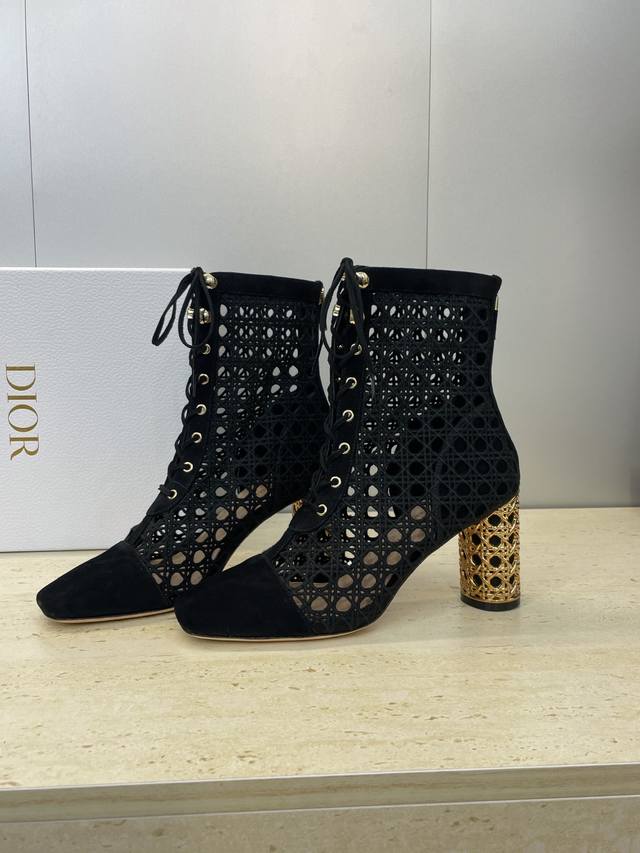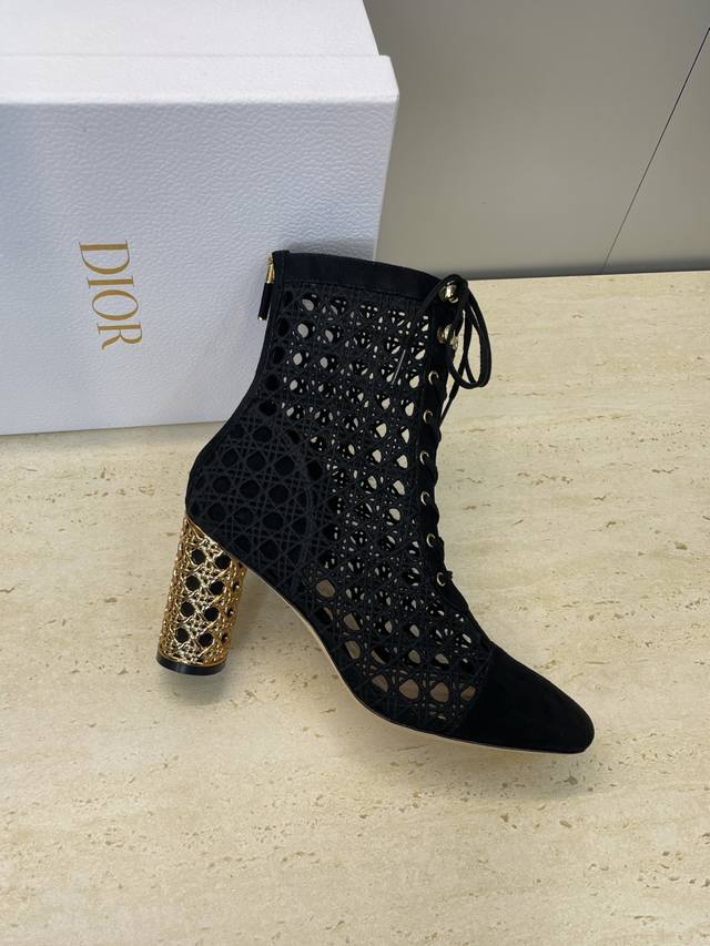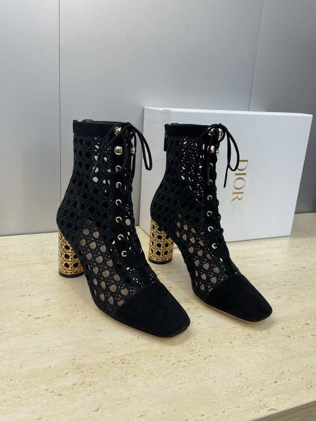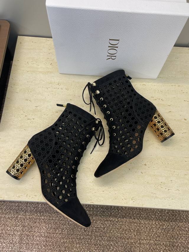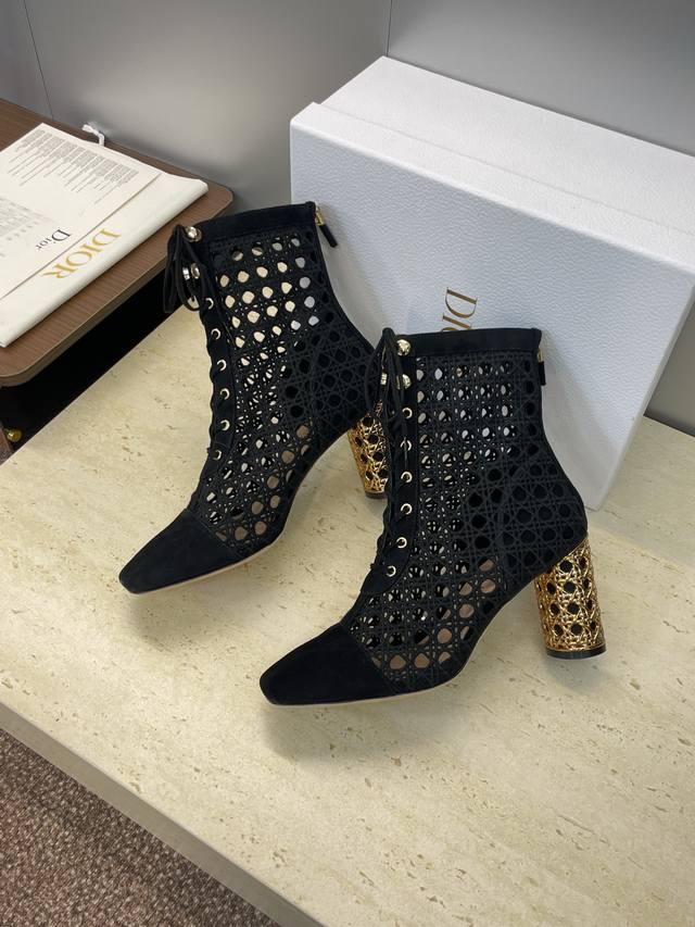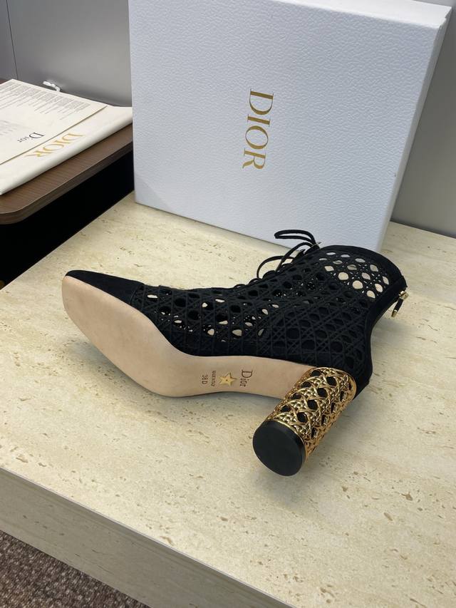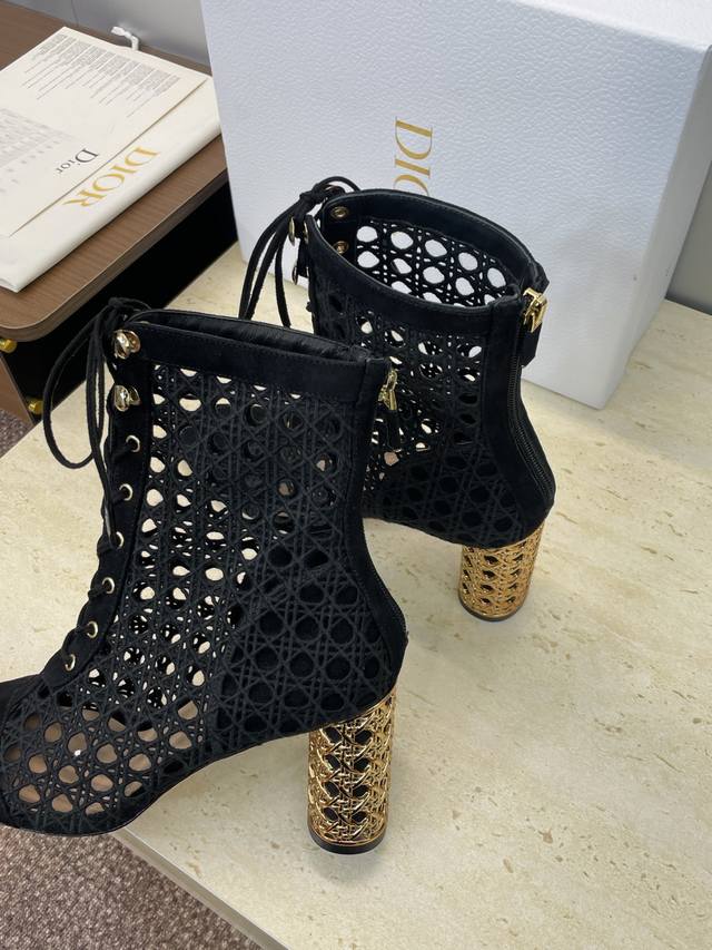 Dior 2025 Fall/Winter Haute Couture Collection D-Lcon Hollow-out High-heeled Women's Boots Cd Letter Logo Hardware Buckle All-over Jacquard Embroidery Elegant Back Zipper Low-heeled Sandals Celebrity Style Punk Style Chunky Heel Square Toe Lace-up Tassel Roman Ankle Boots