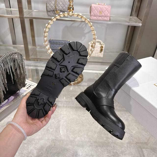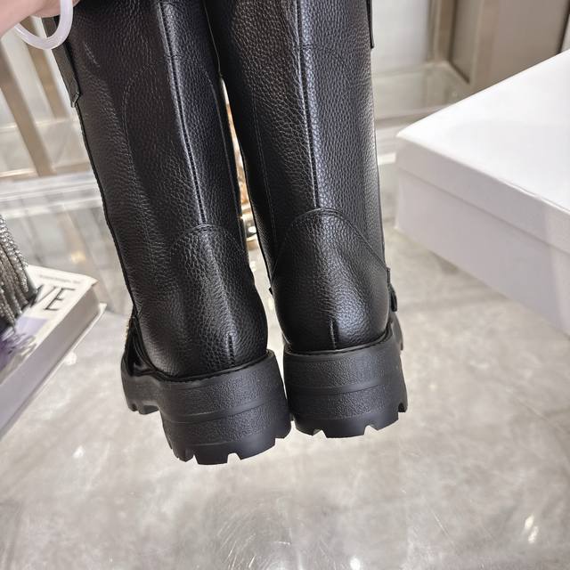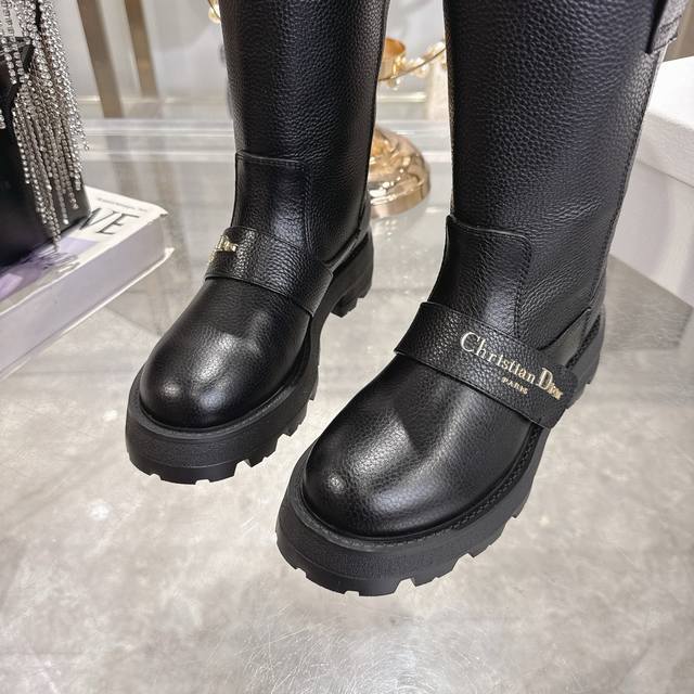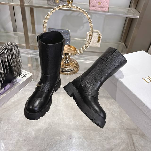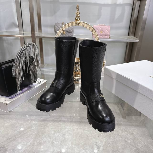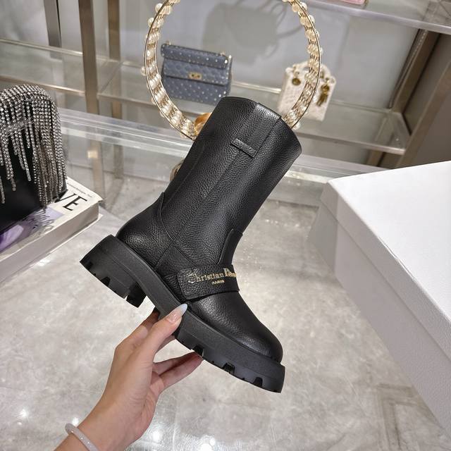 Factory Price P Women's Sports Shoes Original Dior 2025 Autumn/Winter New D-Quest Series Punk Style Cannage Embroidered Women's Boots Celebrity Same Style Cd Letter Logo Hardware Buckle Motorcycle Boots Low Heel Thick Sole Round Toe Slip-on Rider Mid-Calf Boots