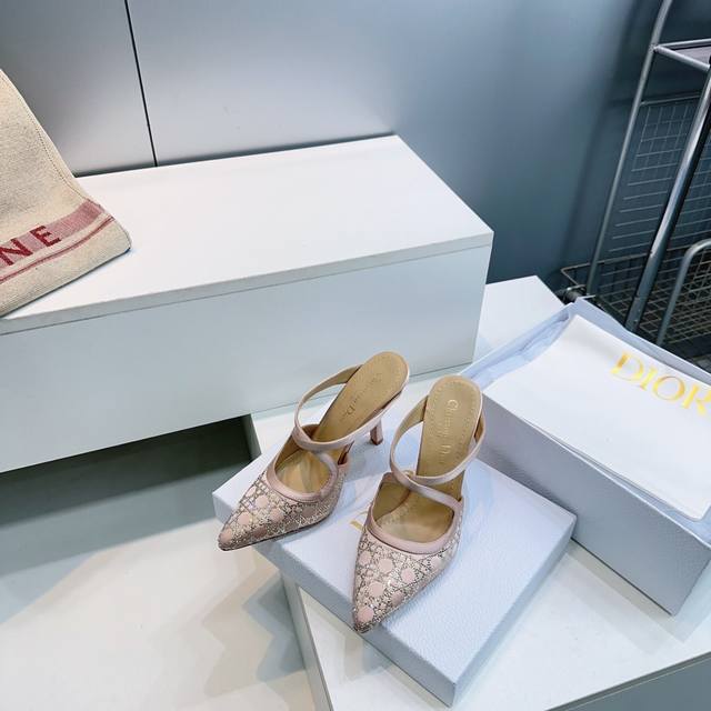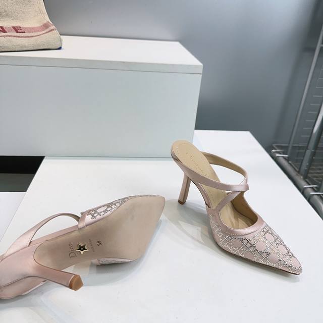 High-quality factory! Top-quality, top-tier quality! Dior 2026 Spring/Summer runway new arrival Bling...Bling... Silk mesh crystal rhinestone single sandals/wedding shoes series, celebrity style rhinestone cannage pattern kitten heel slippers, top-tier high-end version exclusively released! Adorned with crystal rhinestones! Cute, playful, youthful yet sophisticated