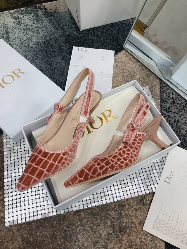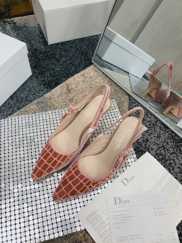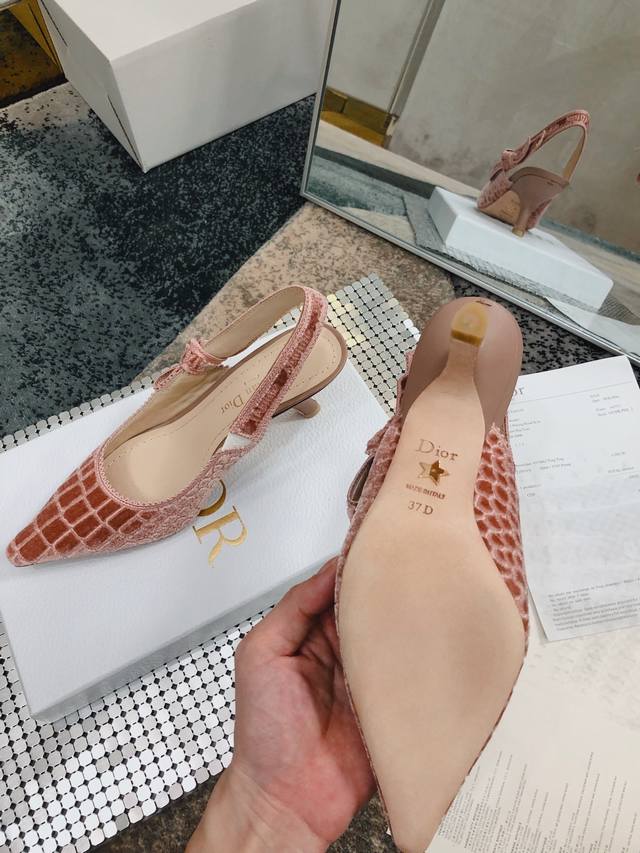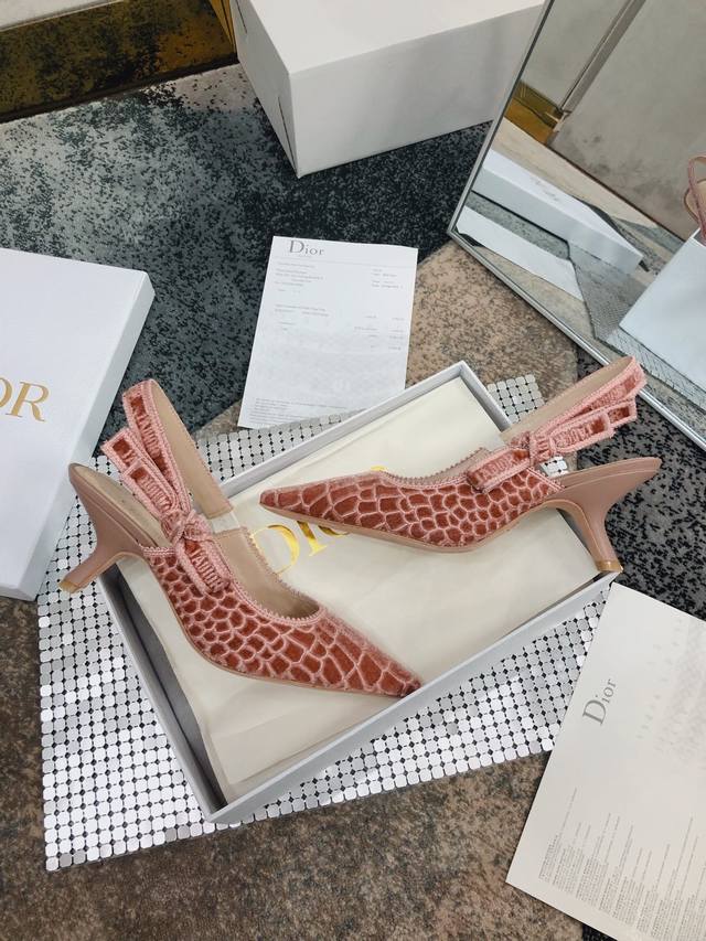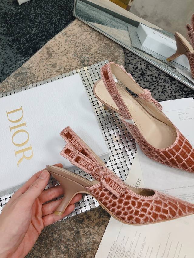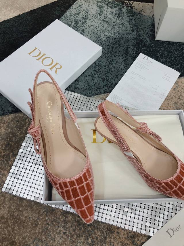 J'adior Dior & Moi Spring/Summer New Haute Couture Slingback Iconic Series Hollow Mesh Cannage Pattern 3D Velvet Embroidery Pattern Slingback Flat Women's Shoes Celebrity Style Letter Logo Webbing Square Toe Chunky High Heel Bow Women's Sandals