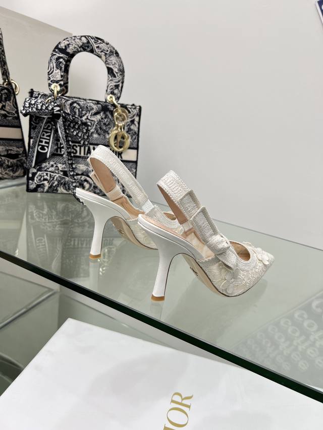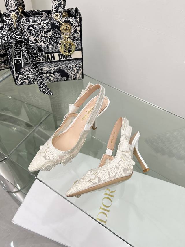 J'adior Ribbon Backless Sandals, Dior Spring/Summer Newest Color Jardin D'Hiver Jacquard Embroidered Logo High-Heeled Bow Color Block Women's Shoes, Top-Tier High-End Version. Material: High-temperature water-soluble electro-embroidery technology fabric + sheepskin lining + Italian genuine leather outsole. Sizes: Standard 33-44, Mid-heel 6.5cm, High-heel 9.5cm; 33-44, 33, 34, 40, 41, 42, 43, 44. Custom orders, no returns or exchanges.