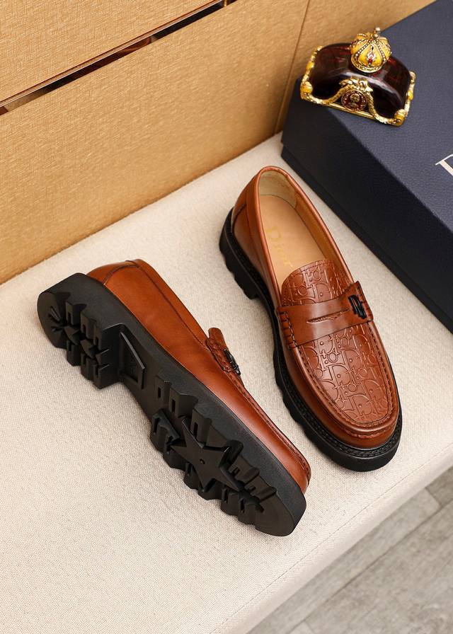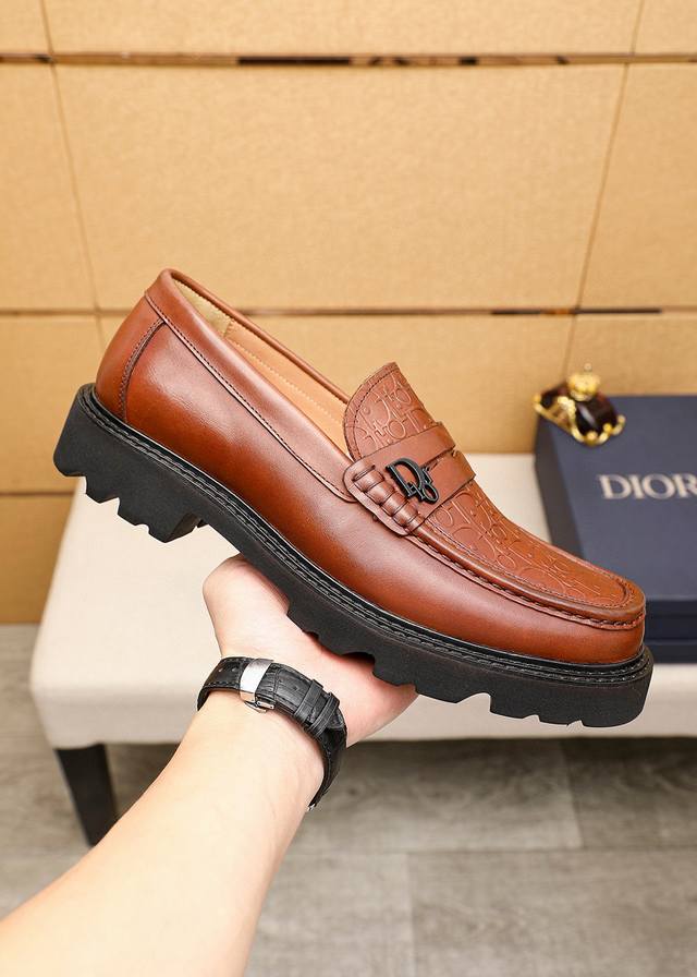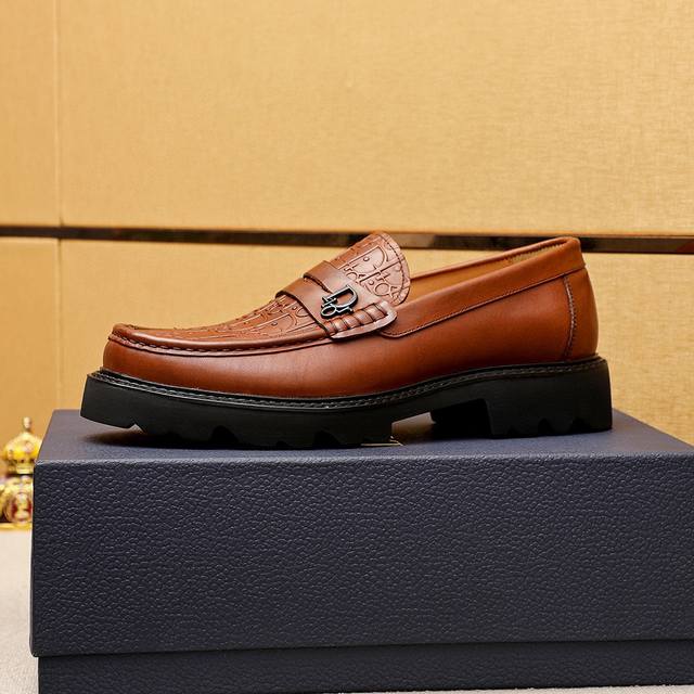 Product Trademark: Dior Casual Leather Shoes True to Size: 39-44, 45 (Made to Order) Materials: Selected Italian imported top-grain calfskin embossed upper + classic hardware buckle, imported water-dyed cowhide lining. Strong three-dimensional visual effect, original outsole. Colors: 1 color available.
