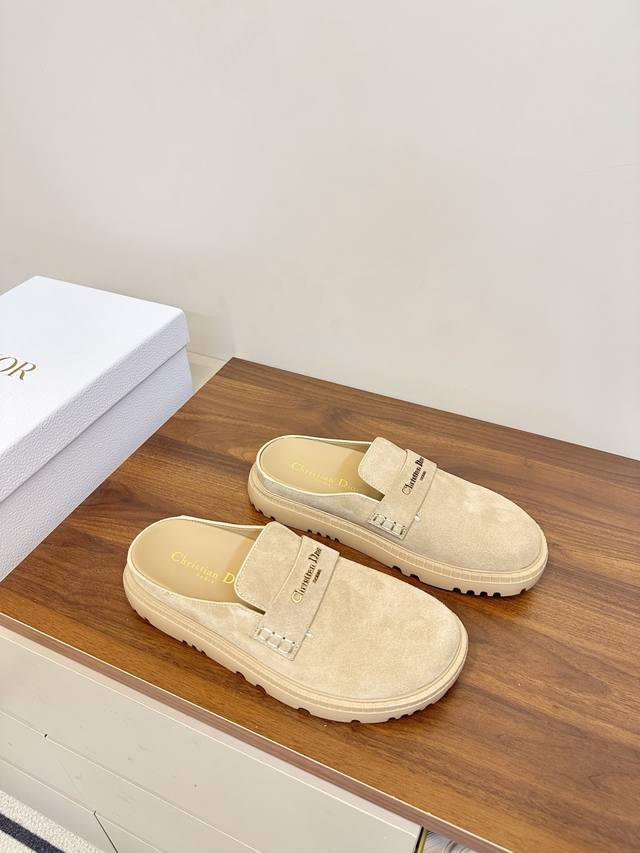 Dior Cruise 2026 Early Spring New Suede Mule Slippers DDD Dilraba Dilmurat's Paris Fashion Week Wear Ddd Dior 2026 Early Spring Collection suede mule slippers, made of soft suede, khaki color, understated and versatile, the metal "Christian Dior" logo on the upper is highly recognizable. Platform design, comfortable and stylish, easy to wear for daily commutes or casual occasions. Ddd Backless design, easy to slip on and off, simple and elegant style, perfect for pairing with trousers or skirts in autumn and winter. High-end fashion item, combining quality and design! Ddd Deerskin upper Ddd Sheepskin lining! Ddd Platform sole 4cm Ddd Sizes: 35-40 40.41 Custom made D DD