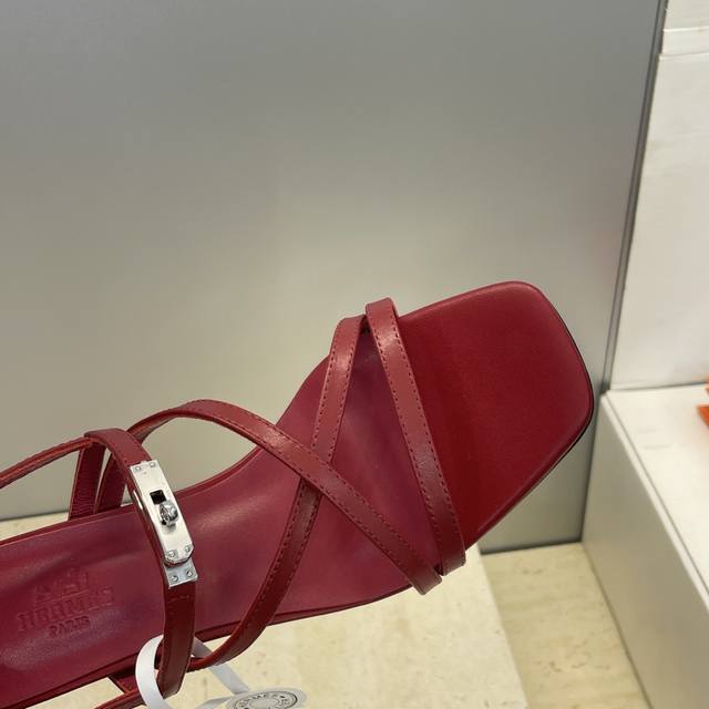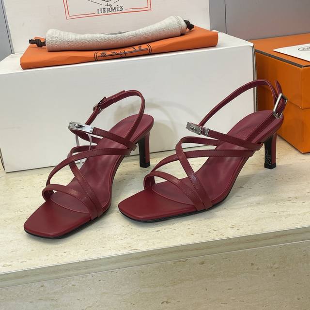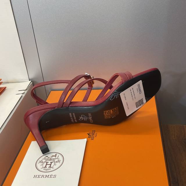 Factory direct price, comes with a full set of airplane box. Dongguan-made Hermes 2026 early spring new Muse Kelly buckle Roman style color-block women's shoes, Hermes logo hardware buckle high-heeled square toe jelly color open back sandals. Material: Imported calfskin upper + water-dyed cowhide lining + Italian genuine leather outsole. Heel height: 4cm, 6.5cm, 9.5cm. Size: Women's sizes 34-43. Custom sizes are non-refundable and non-exchangeable.