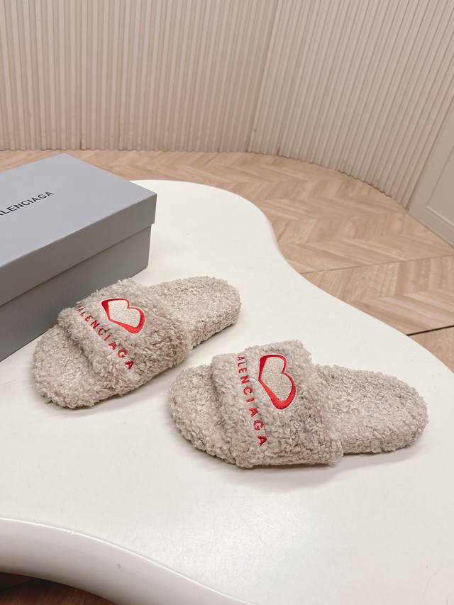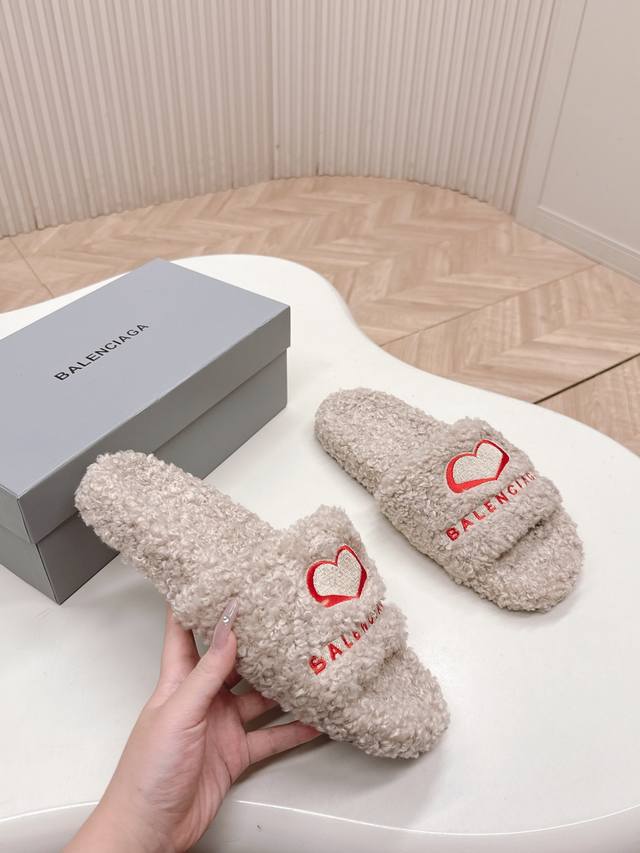 Retail-grade Balenciaga 25 Early Autumn Latest Hot-Selling Fleece Slippers Origi