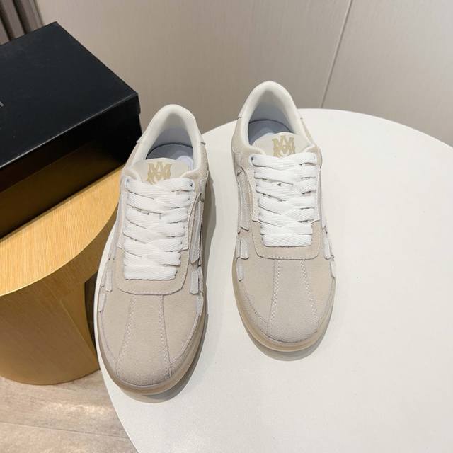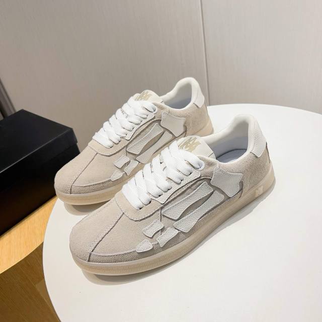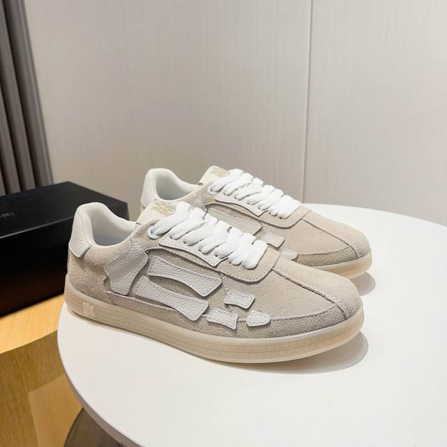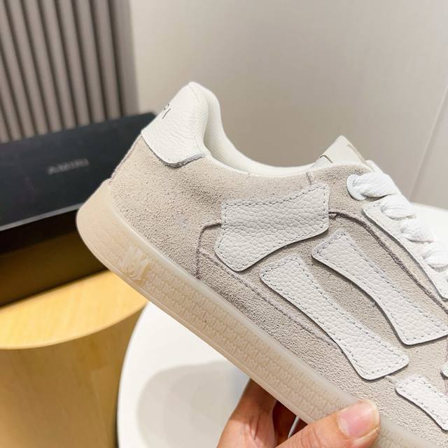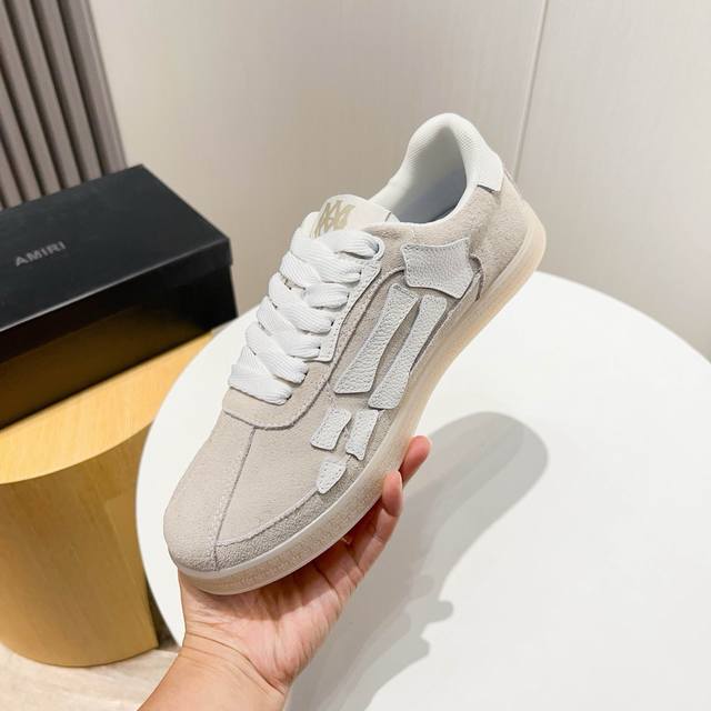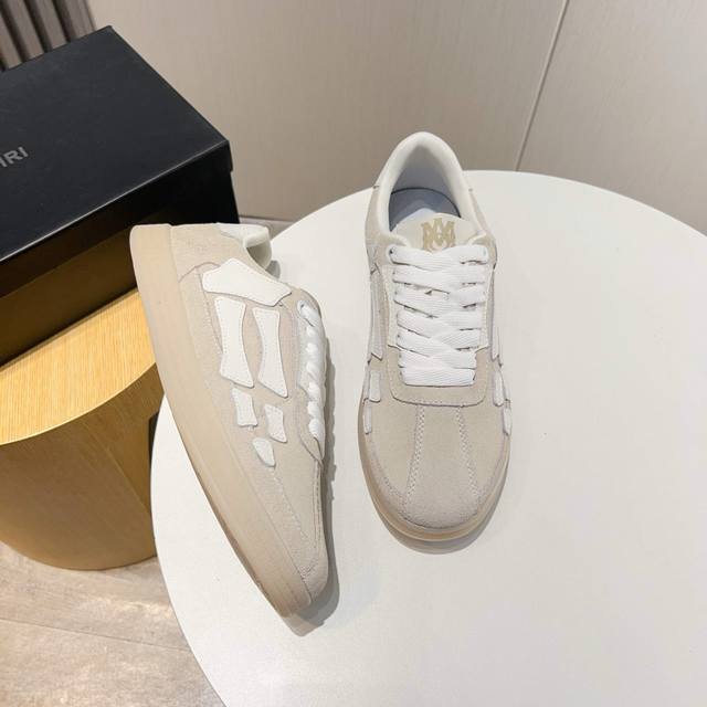 Factory direct price new Amiri trendy shoes, low-top casual sports shoes, celebrity style, made of selected suede cowhide with bone-style stitching, original outsole, comfortable to wear, high-end workmanship and texture. Welcome to purchase. Size: 39-45, 46 (custom sizes available).