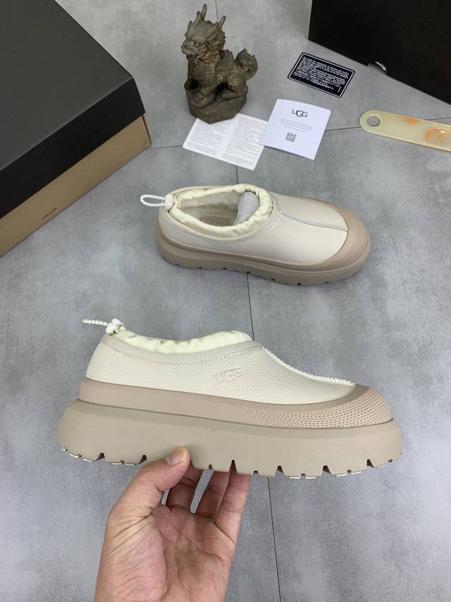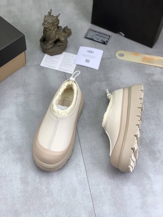 Factory direct price, real price for couples' Ugg Tasman Weather Hybrid slip-on snow boots. Wang Yibo's signature style. The classic Tasman silhouette features a striking orange sole and color-blocked design. Made with eco-friendly, waterproof, and snowproof materials, it combines style and functionality. Pair it with the new Ugg Keane fur-trimmed color-blocked jacket for a vibrant orange and chestnut color combination, creating a new light outdoor style and a fresh early autumn travel experience. Made with premium materials, the 17mm shearling surface is warmer and more breathable, and the outsole has been upgraded to a lightweight and durable LightWing technology outsole! Size: Men's and women's 35-45. Official website colors: 3 colors available.