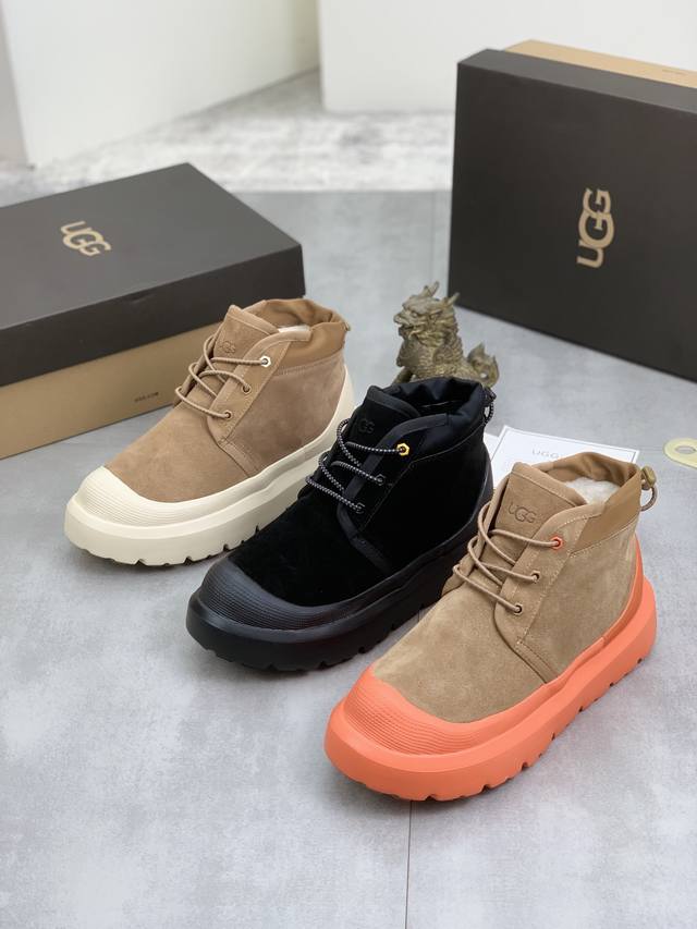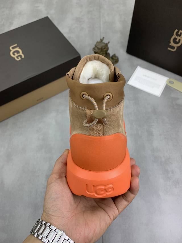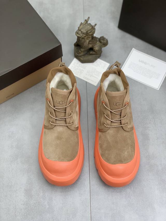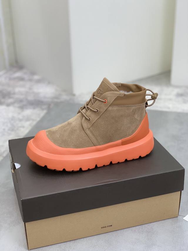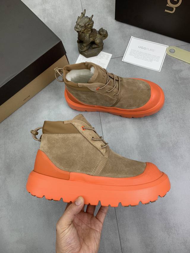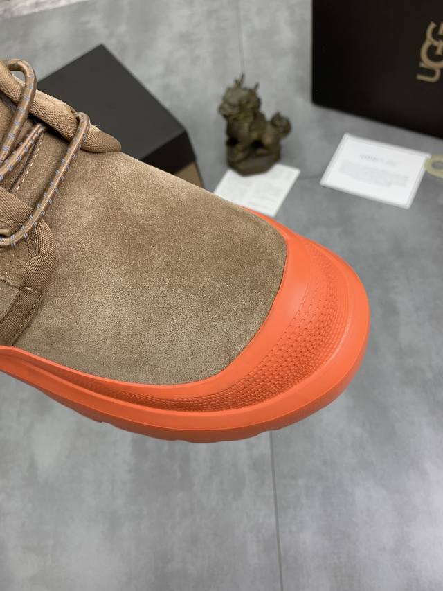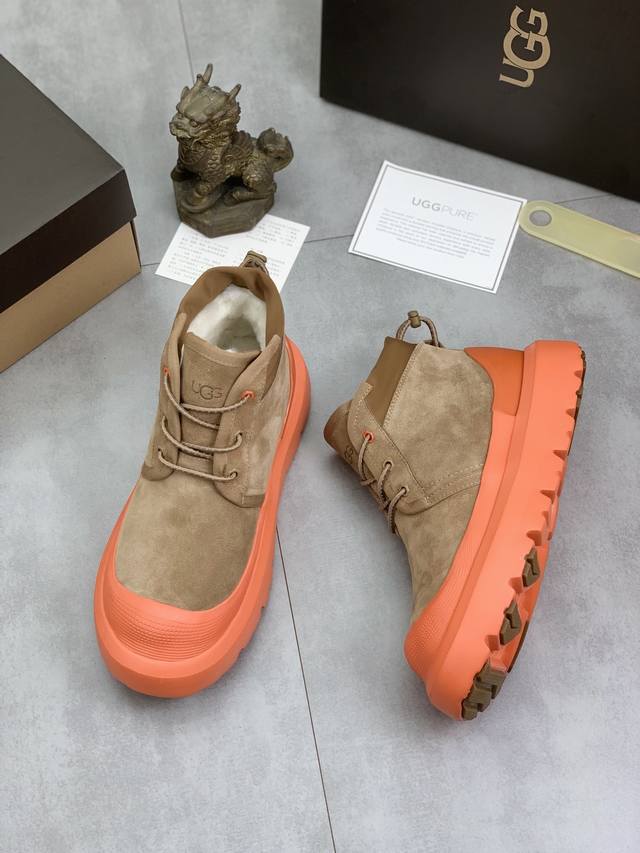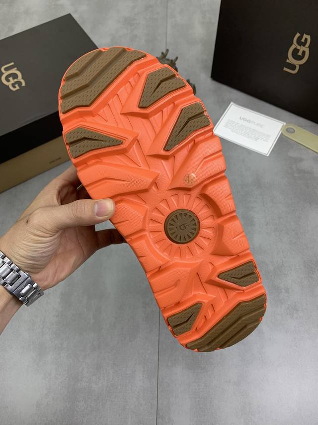 Factory direct price, real price for couples' Ugg Tasman Weather Hybrid slip-on snow boots. Wang Yibo's signature style. The classic Tasman silhouette features a striking orange sole and color-blocked design. Made with eco-friendly, waterproof, and snowproof materials, it combines style and functionality. Pair it with the new Ugg Keane fur-trimmed color-blocked jacket for a vibrant orange and chestnut color combination, creating a new light outdoor style and a fresh early autumn travel experience. Made with premium materials, the 17mm shearling surface is warmer and more breathable, and the outsole has been upgraded to a lightweight and durable LightWing technology outsole! Size: Women's 35-40, Men's 40-44. Available in 3 colors.