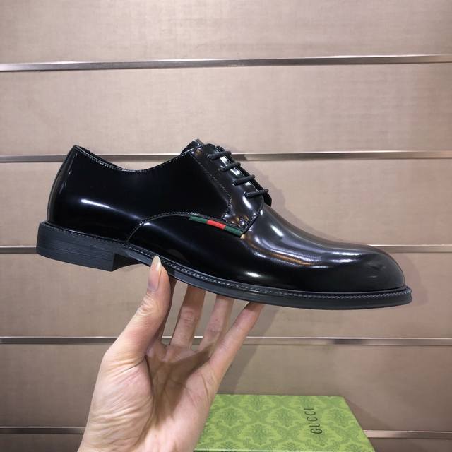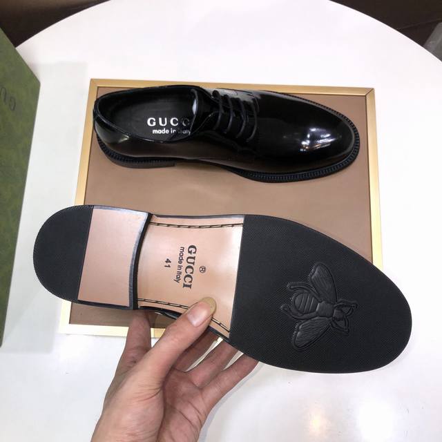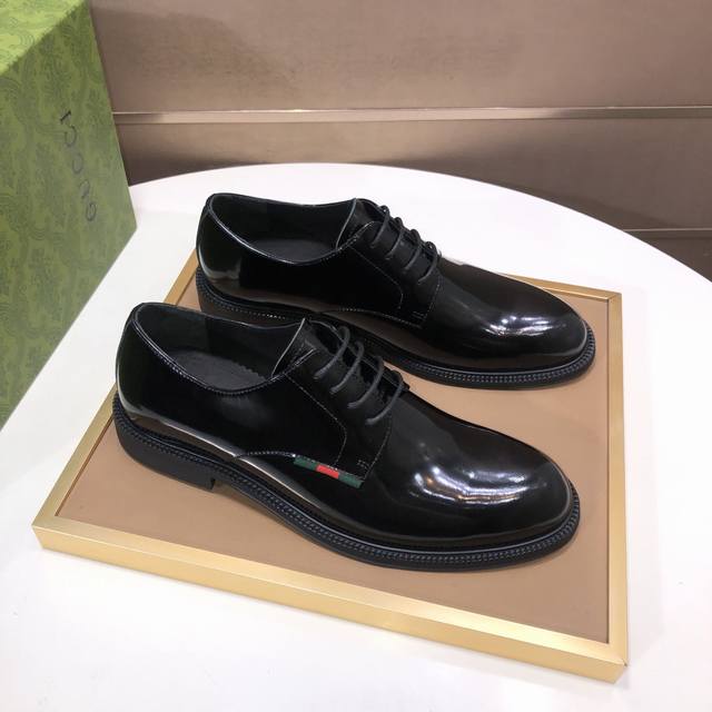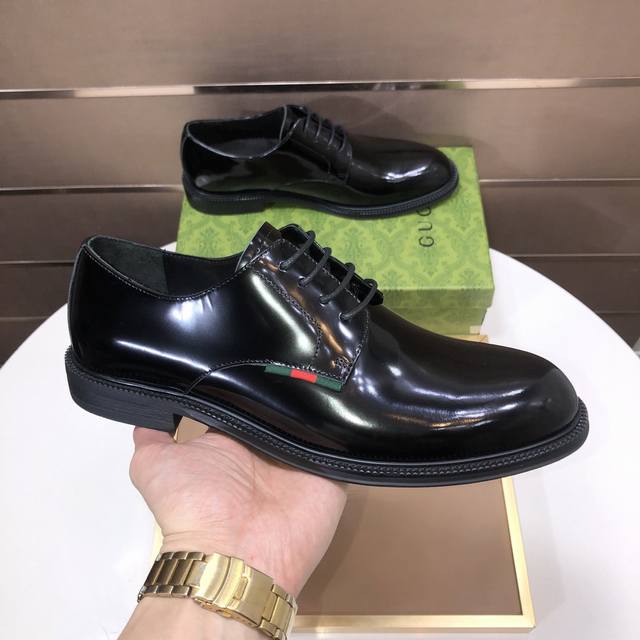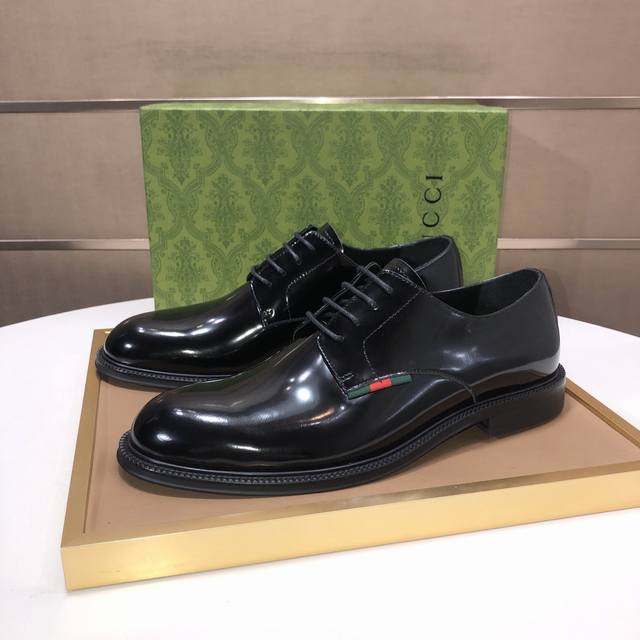 Factory direct wholesale of Gucci, Italy's top luxury men's shoe giant. New arrivals featuring full-grain leather lining. Authentic European style, pleasing to the eye. To ensure durability and prevent deformation, traditional methods are followed, yet innovation is still present. Original sheepskin is used, smooth, natural, and exceptionally glossy. Made with imported cowhide, the first choice for the wealthy. Sizes 38-45. 45 custom sizes available.