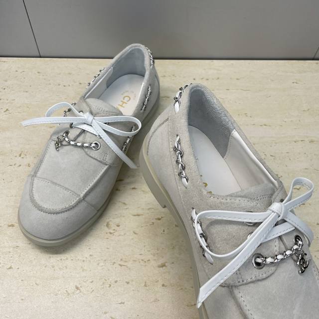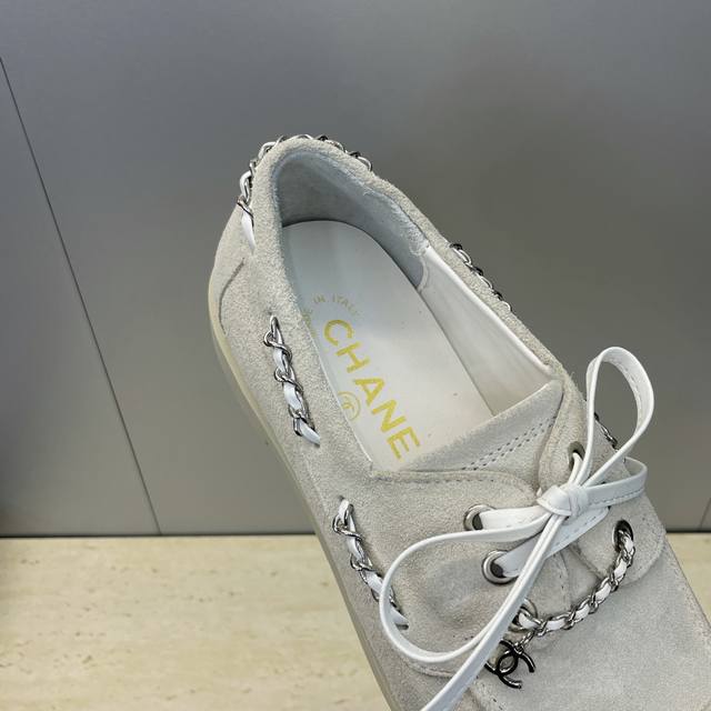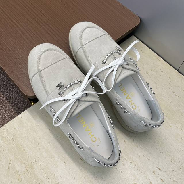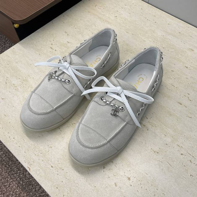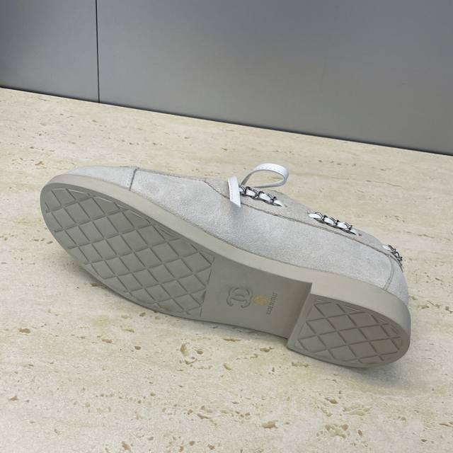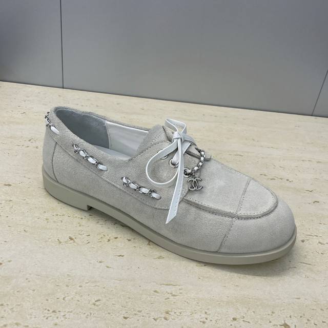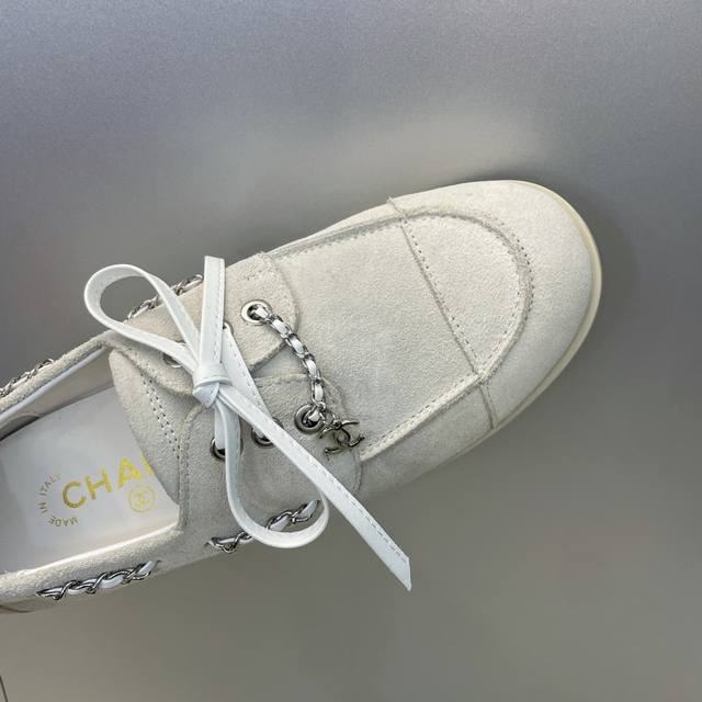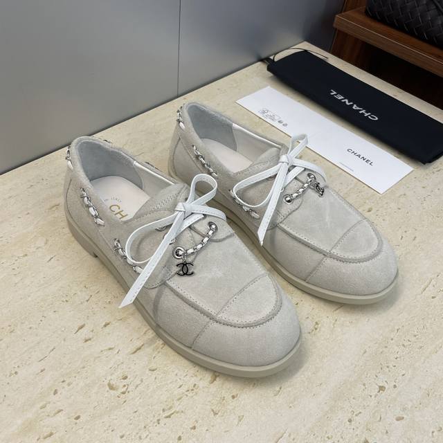 Factory price Ddd Chanel 2025 Early Autumn Runway New Punk Style Flat Lace-up Women's Single Shoes with Chanel Logo Hardware Chain Buckle Round Toe Color Block Loafers Ddd Material: Imported calfskin upper, imported suede + mixed sheepskin lining + original molded hardware buckle + original molded TPU outsole Ddd Size: 35-41 40.41 Custom orders are non-refundable DDD