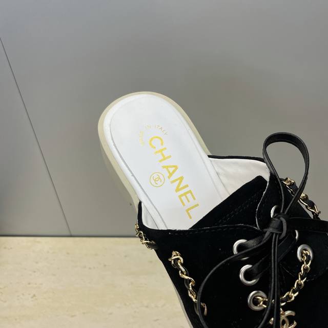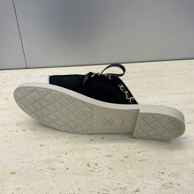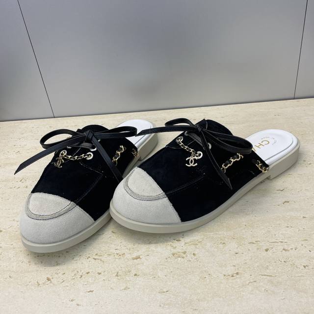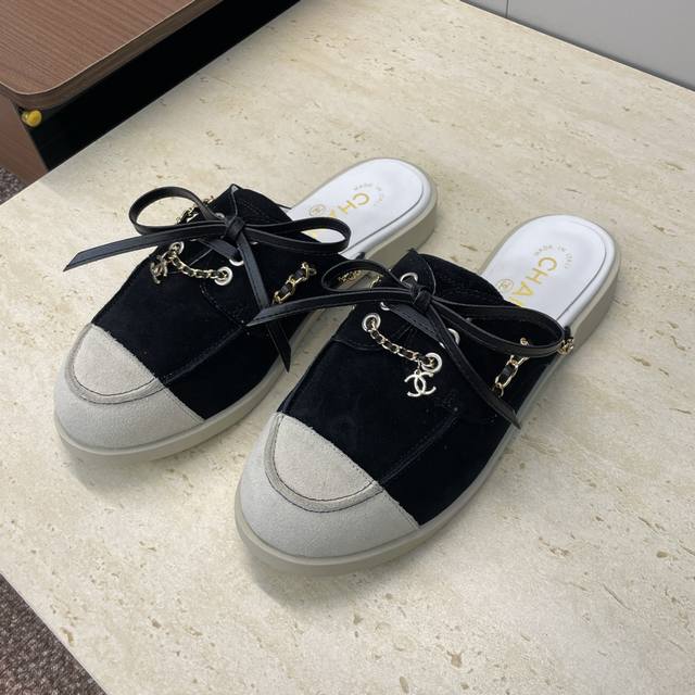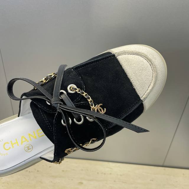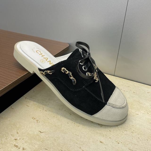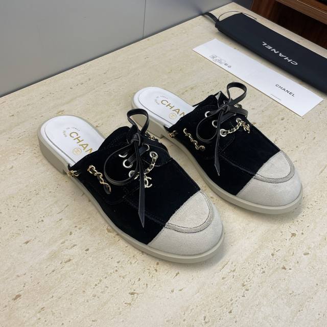 Factory price Ddd Chanel 2025 Early Autumn Runway New Punk Style Flat Lace-up Women's Shoes with Chanel Logo Hardware Chain Buckle Round Toe Color Block Mule Sandals Ddd Material: Imported calfskin upper, imported suede + mixed sheepskin lining + original mold hardware buckle + original mold TPU outsole Ddd Size: 35-41 40.41 Custom orders are non-refundable DDD