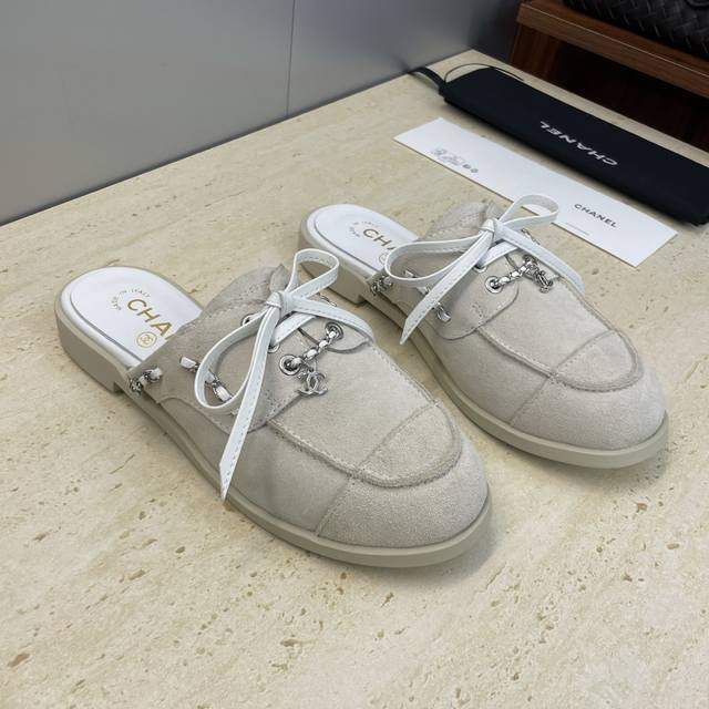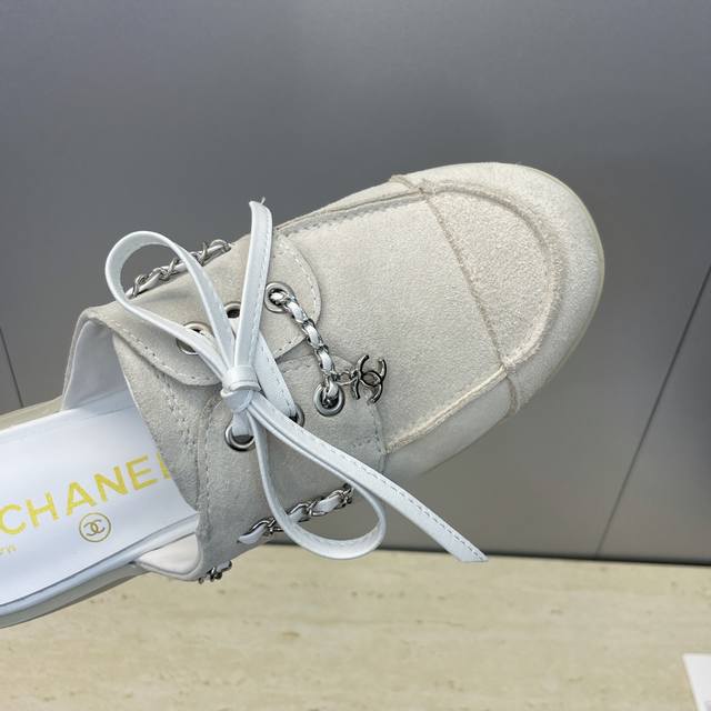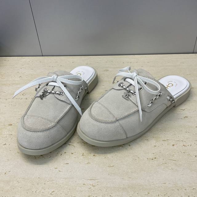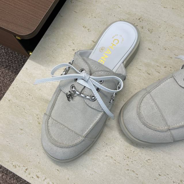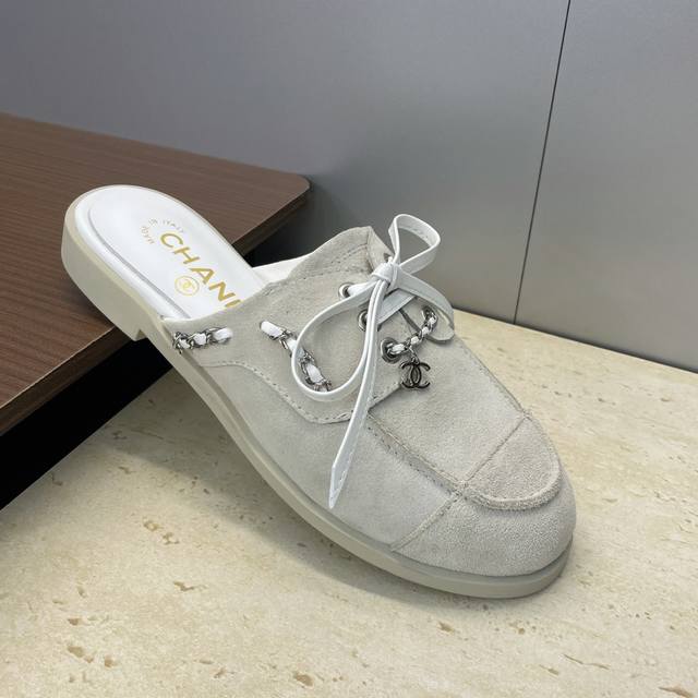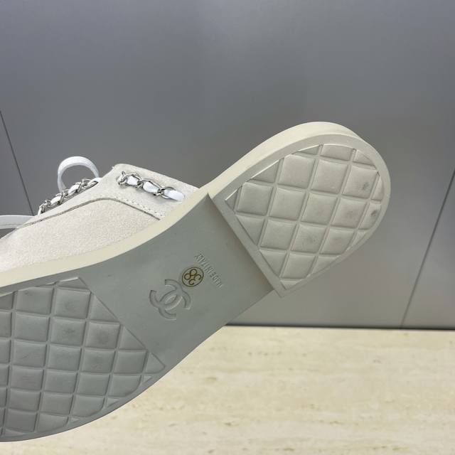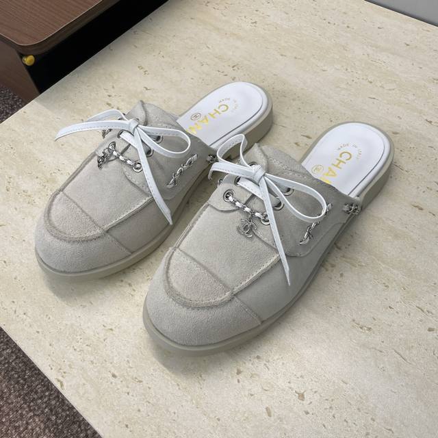 Factory price Ddd Chanel 2025 Early Autumn Runway New Punk Style Flat Lace-up Women's Shoes with Chanel Logo Hardware Chain Buckle Round Toe Color Block Mule Sandals Ddd Material: Imported calfskin upper, imported suede + mixed sheepskin lining + original mold hardware buckle + original mold TPU outsole Ddd Size: 35-41 40.41 Custom orders are non-refundable DDD