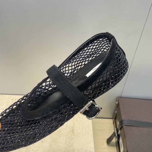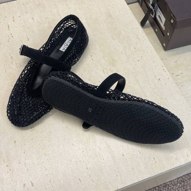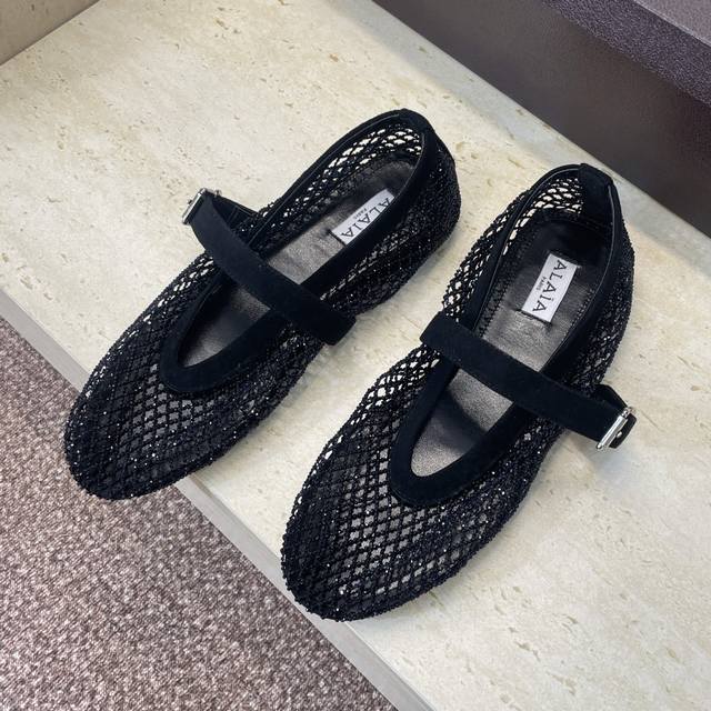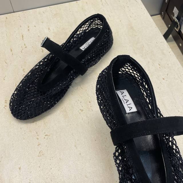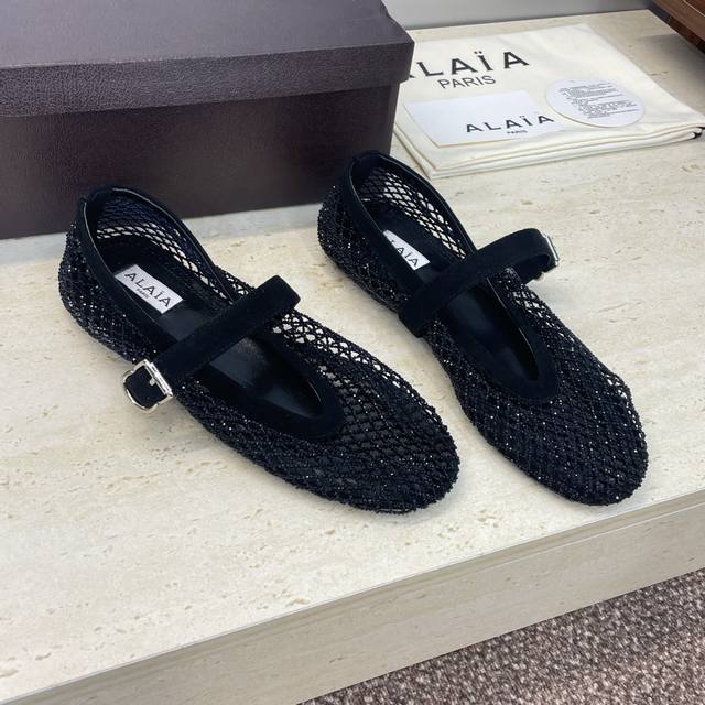 Factory Price: Ordinary Box, Original Packaging. Alaia 2026 Early Spring New Rhinestone Mary Jane Ballet Shoes, Celebrity Style Round Toe Color Block Slip-On Loafers. Material: Imported hollow mesh upper inlaid with Australian rhinestones + water-dyed sheepskin lining + original molded outsole. Size: 34-42. Sizes 34, 40, 41, 42 are custom-made and non-refundable.