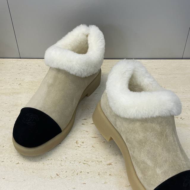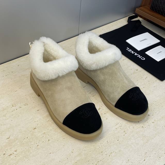Factory price p Ddd Chanel 2025 Autumn/Winter New Style Lambswool Warm Women's Shoes with Chanel Logo, Hardware Buckle, Round Toe, Low Heel, Color Block, Back Zipper, Deep Mouth Shoes Ddd Material: Imported suede upper + lambswool lining + original molded outsole Ddd Heel height: 2.5cm Ddd Size: 35-41 40.41 Made to order, no returns or exchanges Ddd