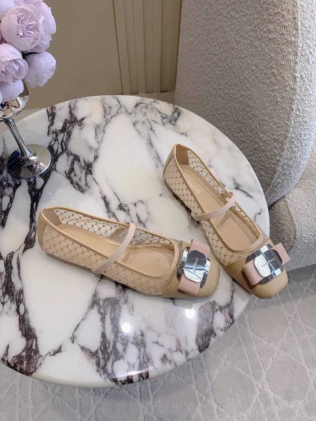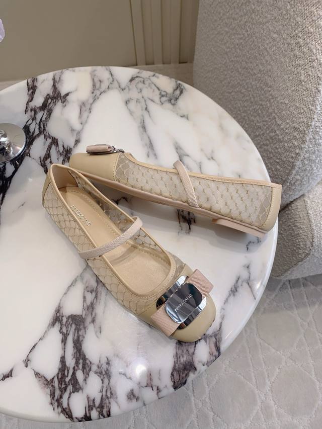 Factory Price p Ddd Ferragam* New Mesh Ballet Flats: The design is exquisite, every detail is full of artistry. Soft cloud-like feel, combining style and comfort. Ddd Mesh upper with sheepskin patchwork. Zp molded, hardware buckle, insole, original sheepskin molded, non-slip outsole. Sizes 35-39, 34, 40. Custom made. DDD