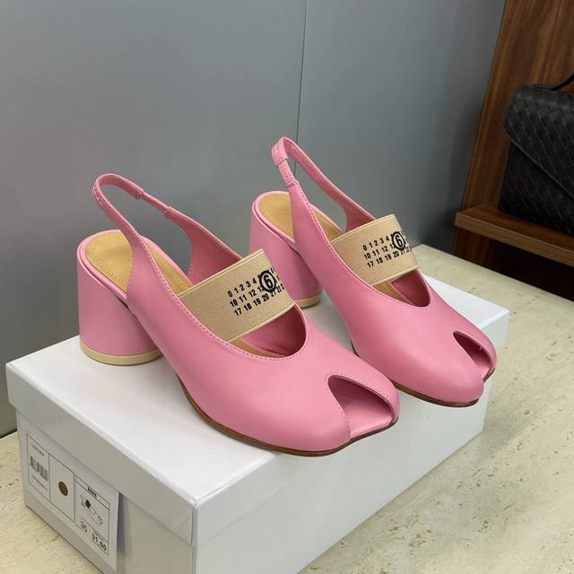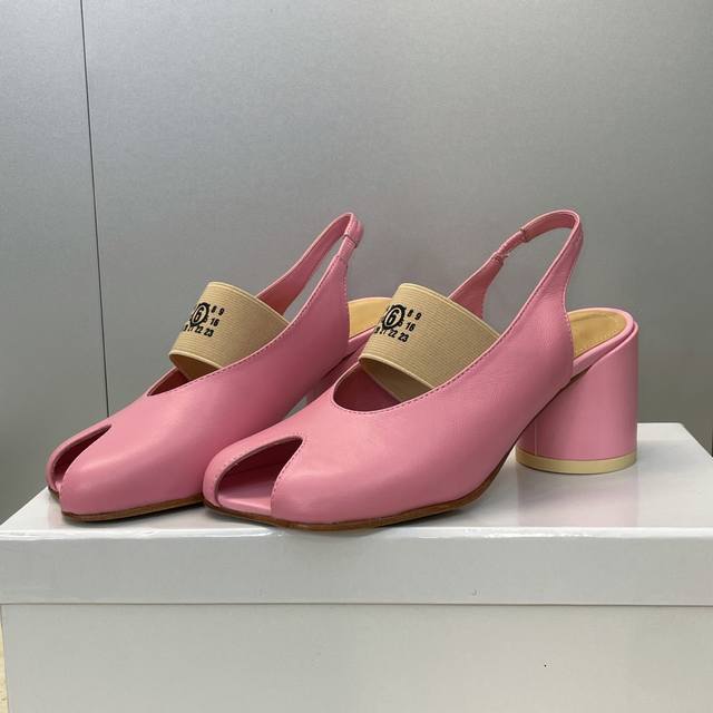 Factory price p Ddd Maison Margiela 2026 Early Spring New Flat Jelly Color Women's Shoes Mm6 Letter Logo Color Block Chunky Heel Peep Toe Open Back Sandals Ddd Material: Imported calfskin upper + water-dyed cowhide lining + Italian genuine leather outsole Ddd Heel height: 6.5Cm Ddd Size: 35-41 40.41 Custom orders are non-refundable Ddd