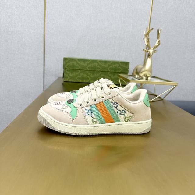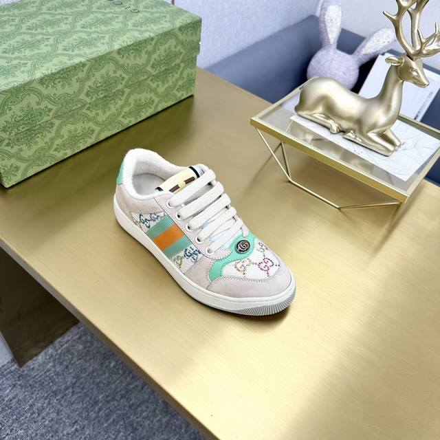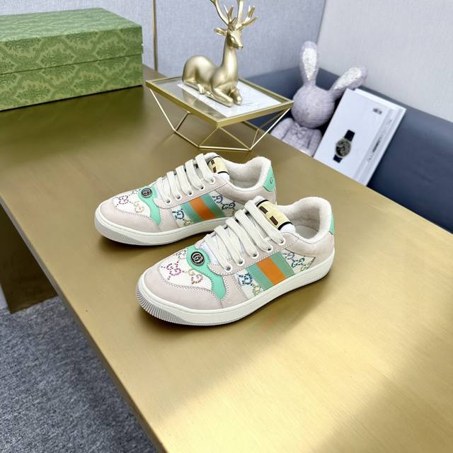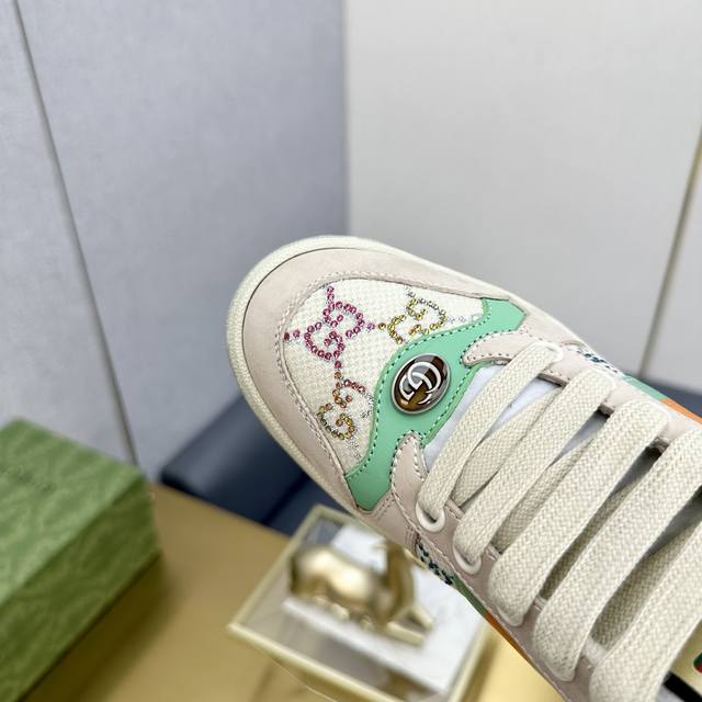 Factory price, PP men's and women's sizes, highest quality on the market. DDD Gucci newly upgraded back lining, top-quality distressed sneakers, Screener series crystal-embellished sneakers. DDD G distressed sneakers with rhinestone embellishments, blue rhinestones, classic casual couple style, retro sneakers, distressed G brand distressed sneakers, updated simultaneously with boutiques! DDD