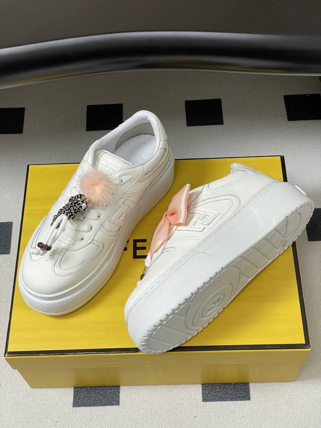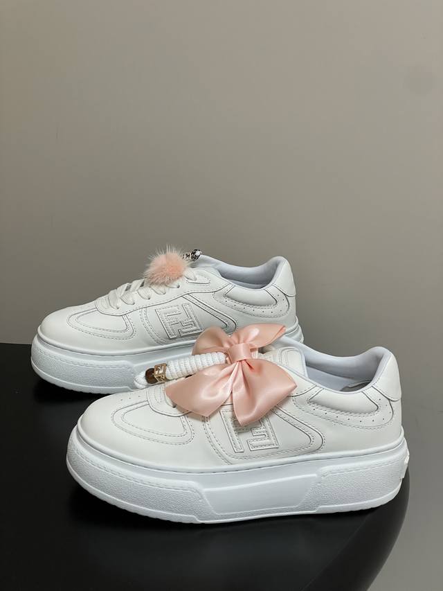 All Day - Top Quality DDD Fendi Match Series 25 Latest Colorway Charming Platform Sneakers Lace-up Casual Sneakers DDD Fendi Match Lace-up Sneakers. Light pink leather upper with white and ochre brown details. Sides adorned with contrasting leather Ff appliqu
