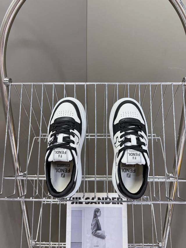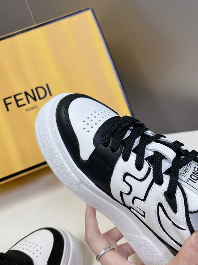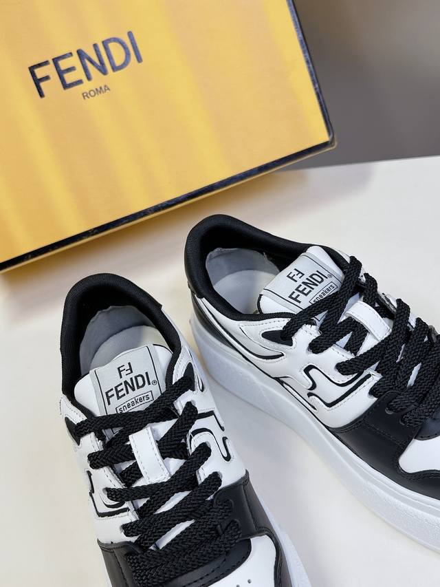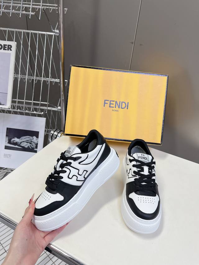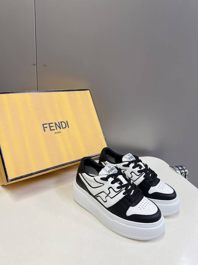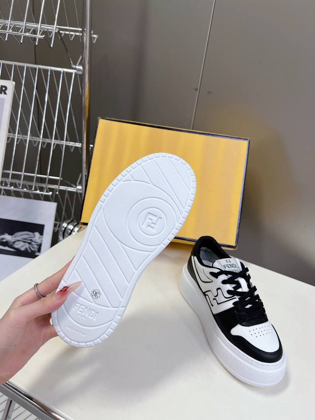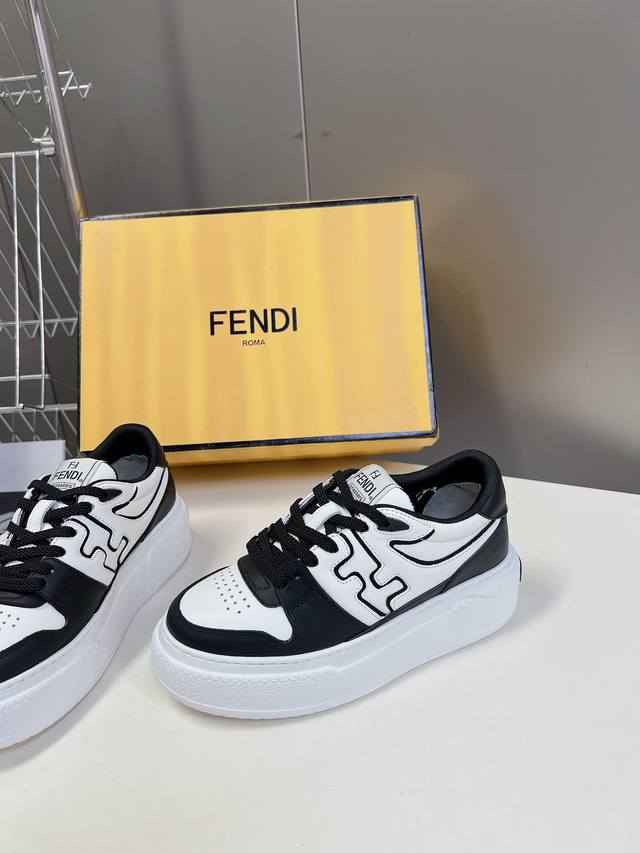 Authentic Fendi Classic Match Series New Thick-Soled Casual Shoes (Purchased from a proxy for 10110 RMB) Perfectly replicated details. Thick-soled Match upgraded new model with full leather stitching. Fresh design with retro flair, super stylish and versatile. The upper features a combination of rubber and cowhide, with a raised double F logo on the side. The lining is made of breathable fabric, lightweight, comfortable, and versatile. Original TPU outsole, 5cm height