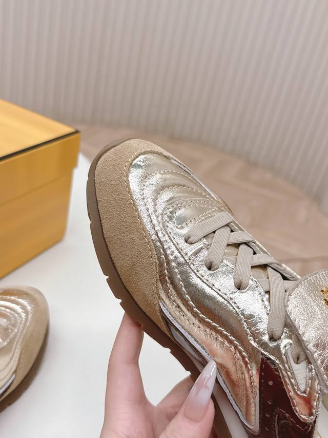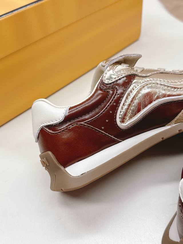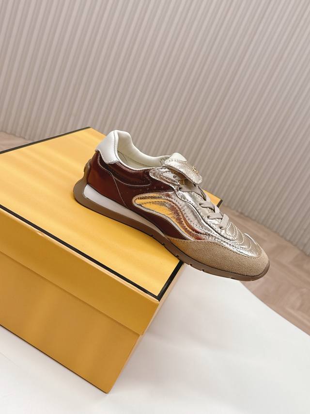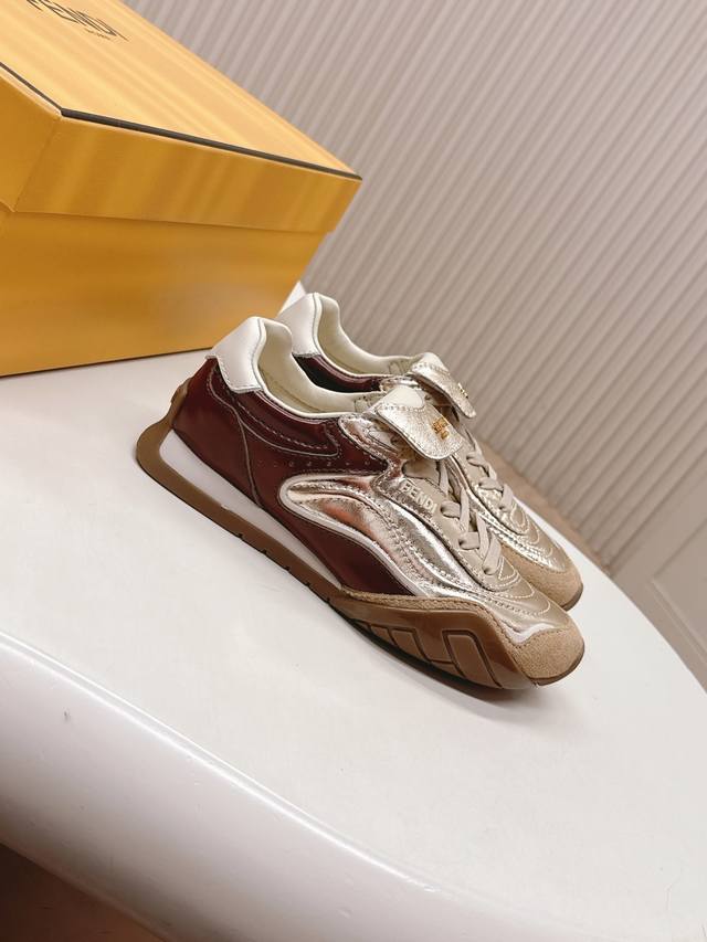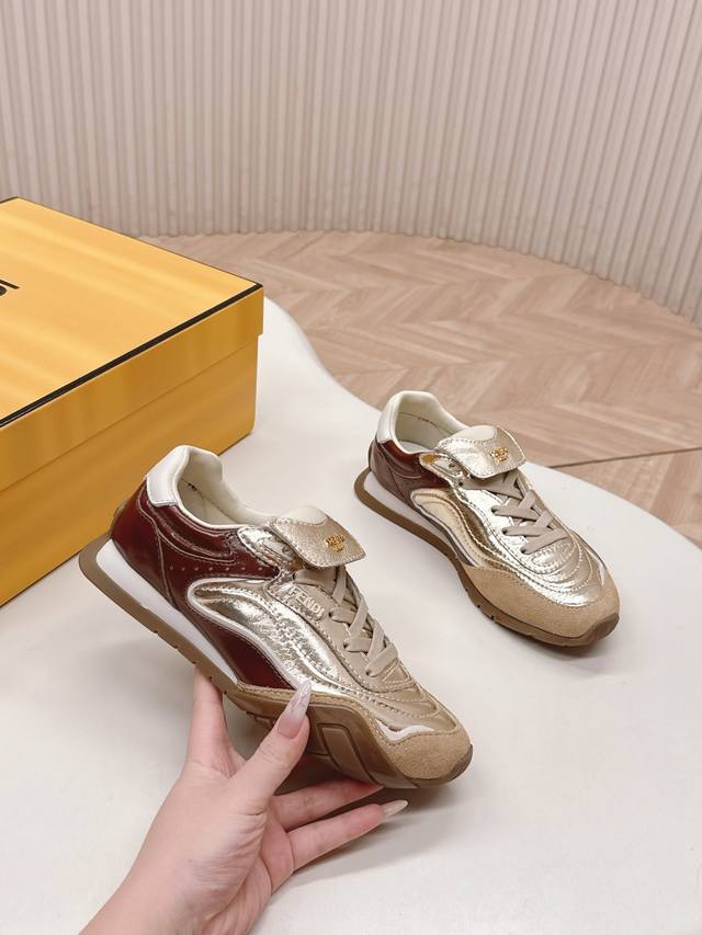 Couple style Fendi latest retro Cornetto sneakers, German training sneakers. Made with premium suede and leather, inspired by retro style, a fresh interpretation of classic design. Lightweight, comfortable, and breathable, a must-have for all seasons. Effortlessly switch styles whether paired with jeans or skirts. Excellent comfort for extended wear, even while shopping. Material: Cowhide. Lining: Sheepskin. Outsole: TPU. Size: #35-45.