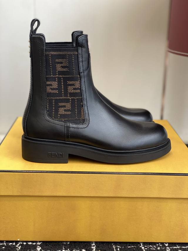 Fendi Filo Monogram Chelsea Leather Motorcycle Boots, Size 25. These Fendi ankle boots perfectly capture the classic monogram pattern and sleek ankle boot silhouette, giving you a truly "sophisticated and relaxed" feel! The black leather exudes a cool and edgy vibe, while the monogram patchwork instantly adds a touch of distinctiveness. The slip-on design is perfect for those rushed mornings and commutes
