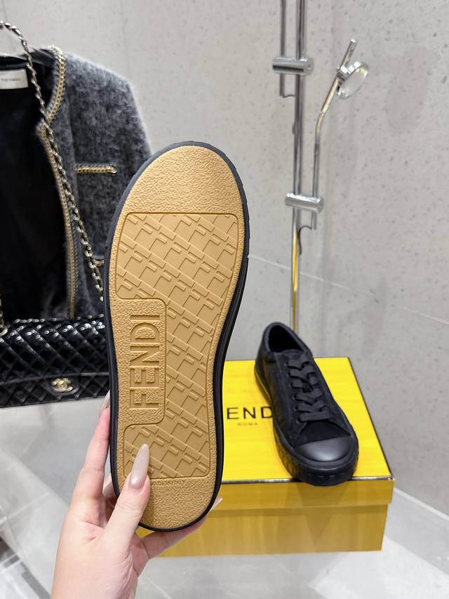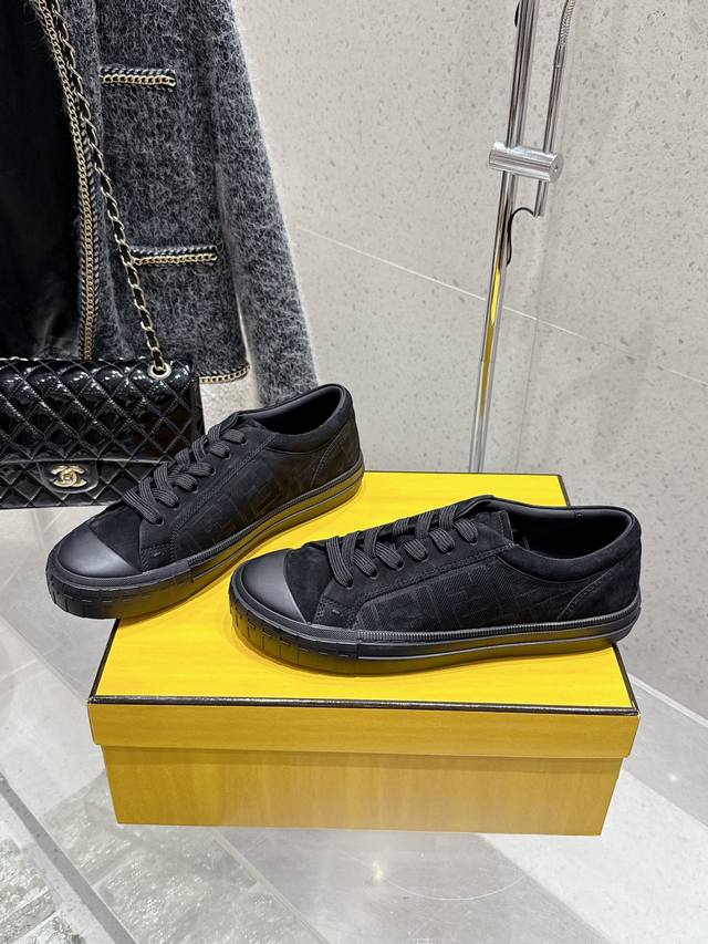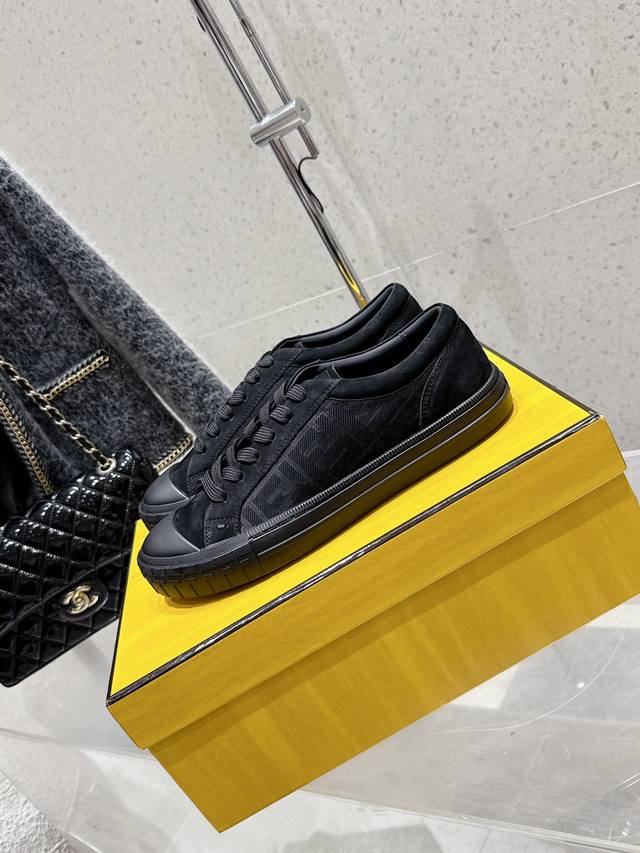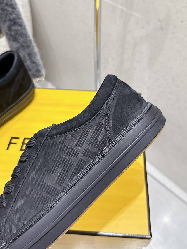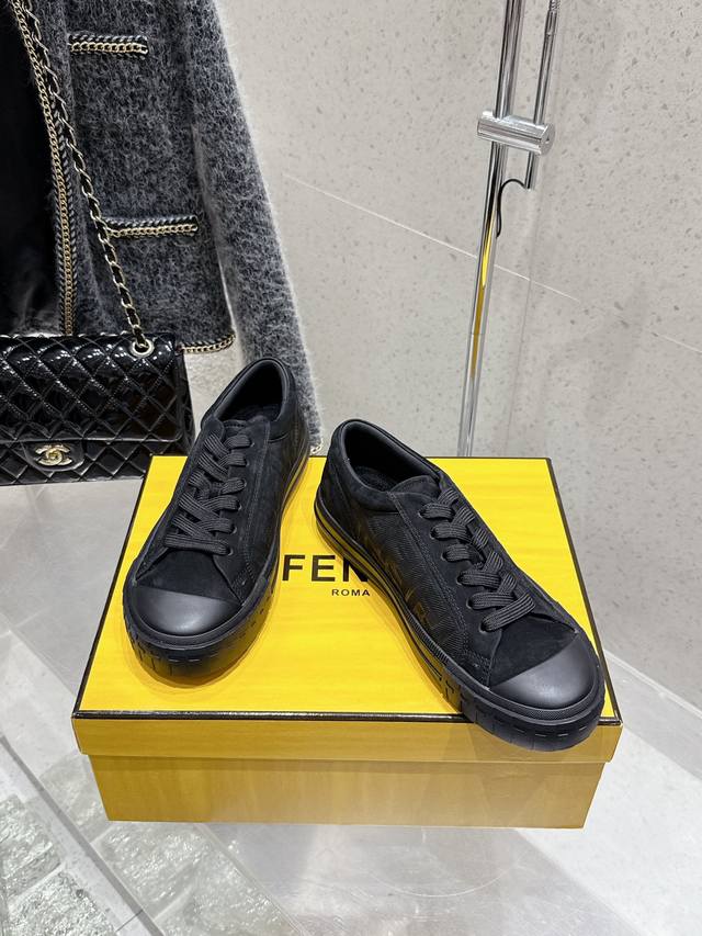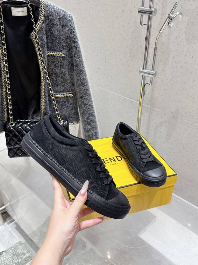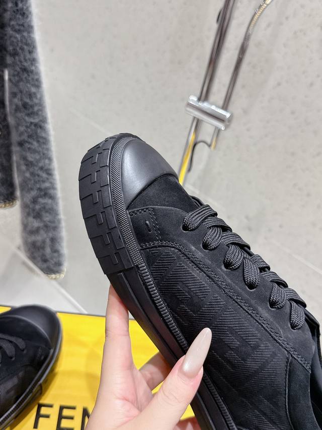Factory direct Fendi new couple's casual sports shoes. Classic Ff monogram cowhide embossed upper, super good-looking and versatile. Sheepskin lining, lightweight and comfortable. Original TPU outsole. Sizes: 35-45 (women's 40, men's 45). Custom orders are non-refundable.