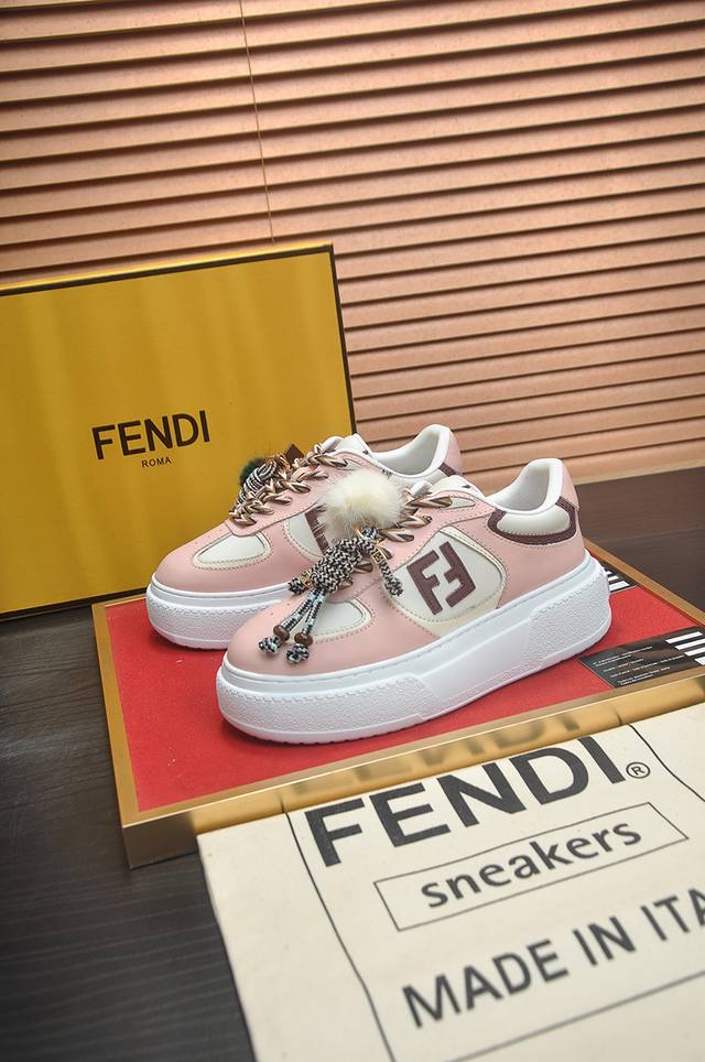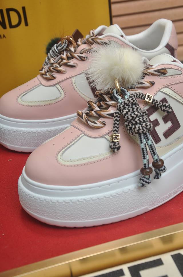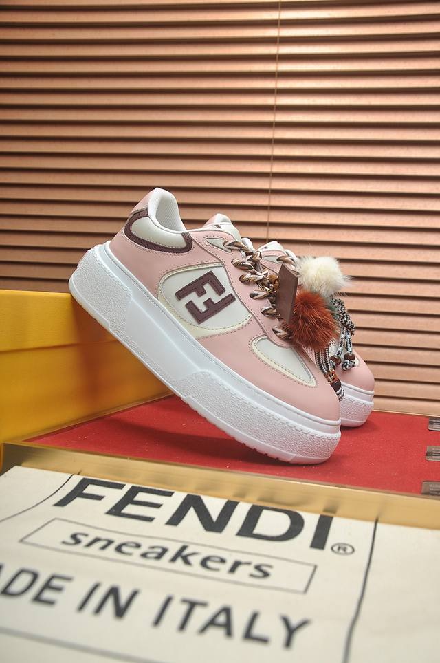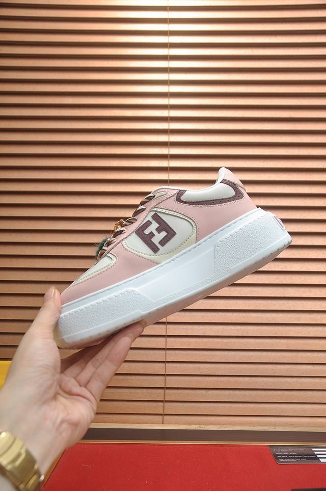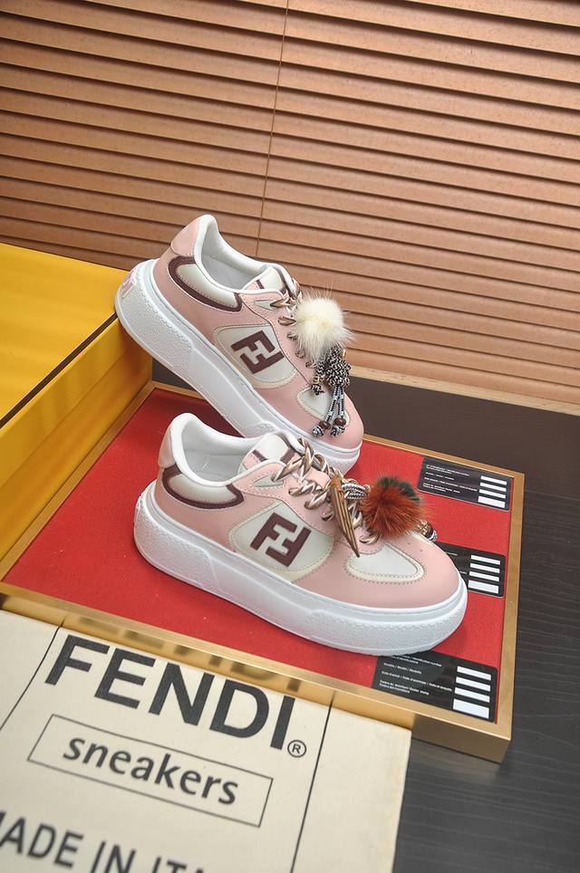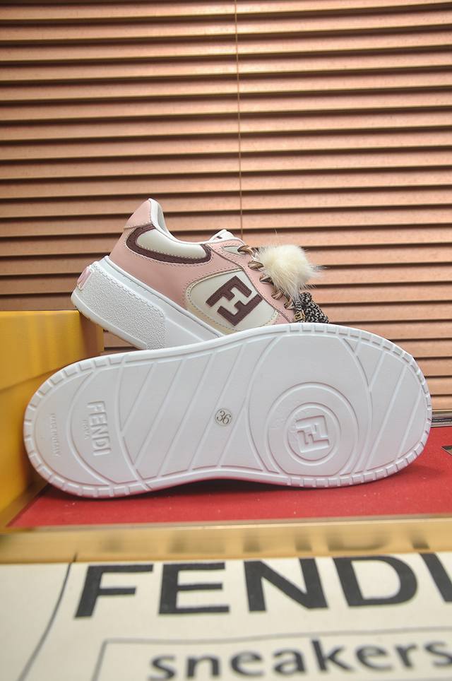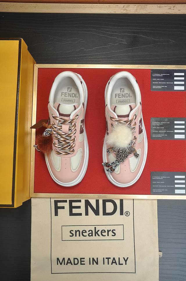 Factory Price: p Fendi's latest couple's style, a favorite among many celebrities. A one-to-one replica of designer Kim Jones's first sneaker, the Fendi Match and Donkey Trainer basketball sneakers. Material: Original silk leather. Lining: Breathable mesh. Packaging: Original 1:1 matching high-end packaging. Size: Women's 35-40.
