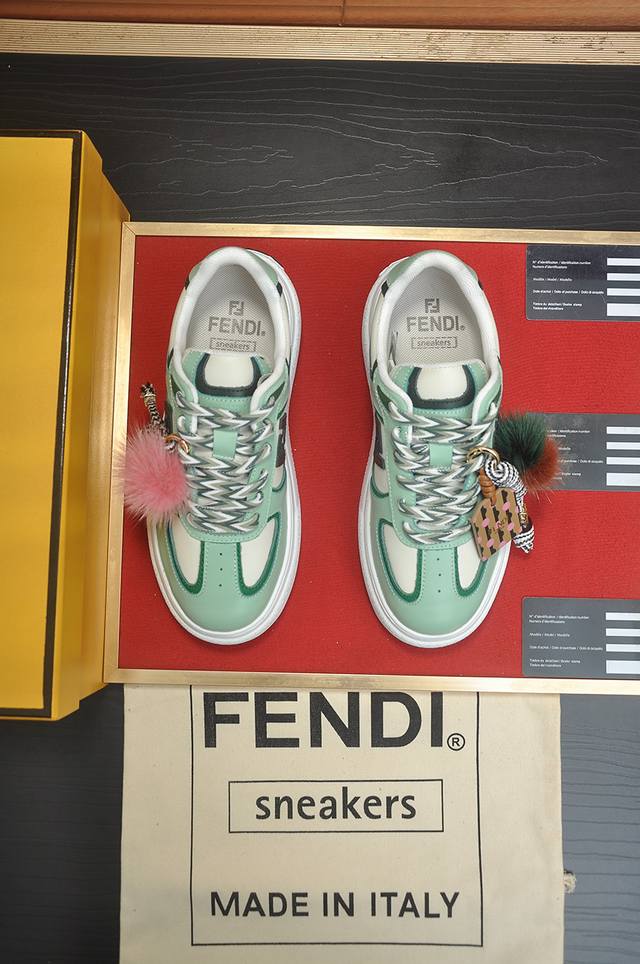 Factory price p Fendi's latest couple's style, the same style as many celebrities, Fd Match original one-to-one replica of designer Kim Jones' first sports shoe, Fendi Match and Donkey's Trainer basketball sneakers. Material: original silk leather. Lining: breathable mesh. Packaging: original 1:1 matching high-end packaging. Size: Women 35-40, Men 38-44, 45, 46. Custom-made, no returns or exchanges.