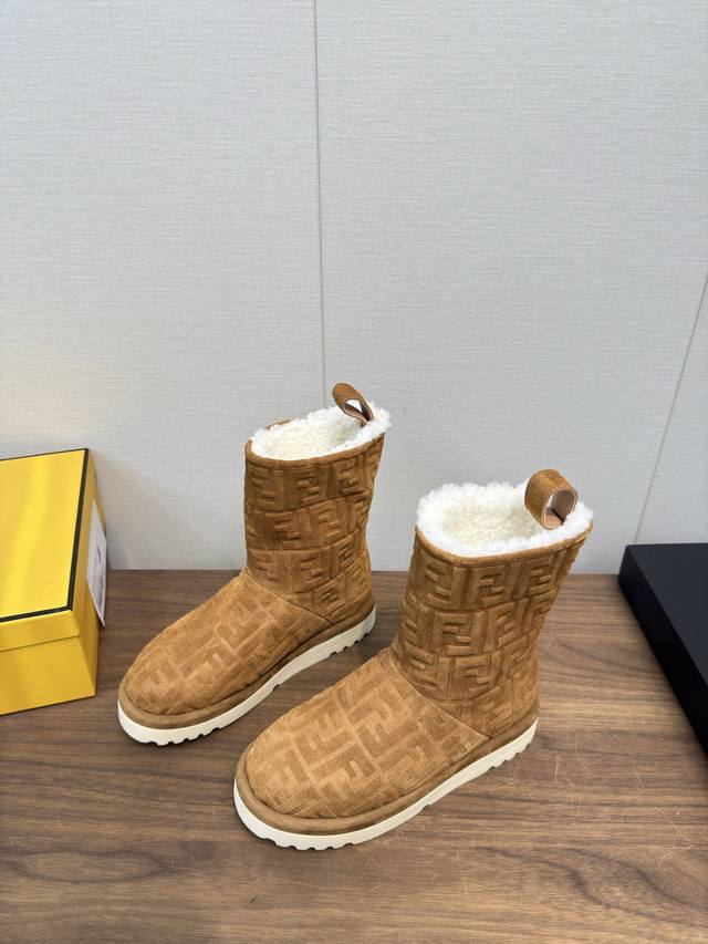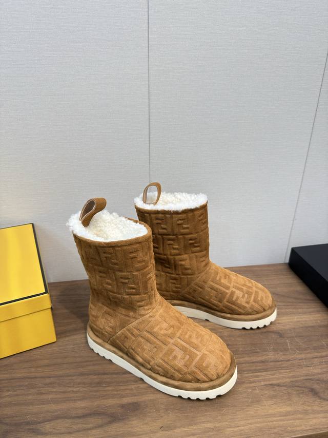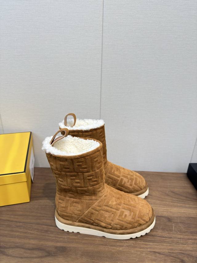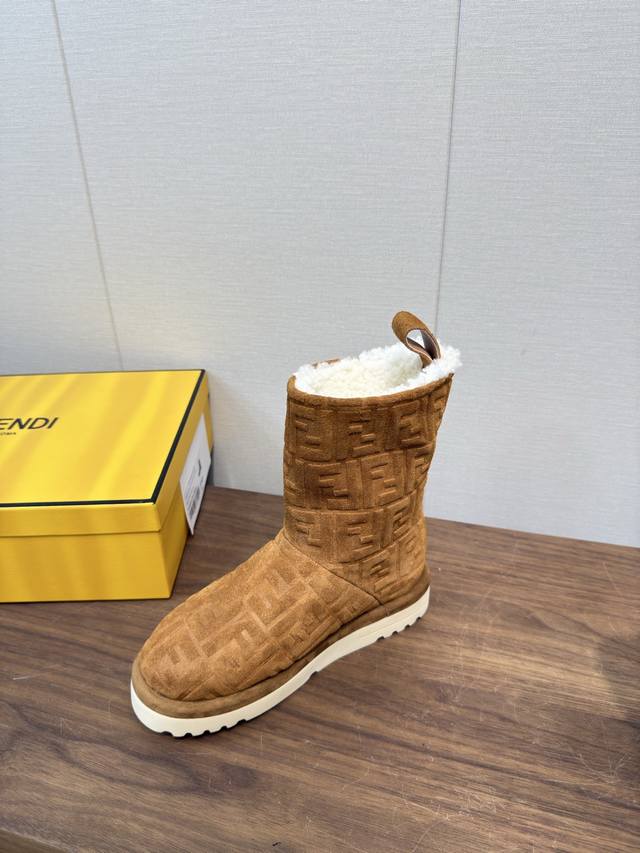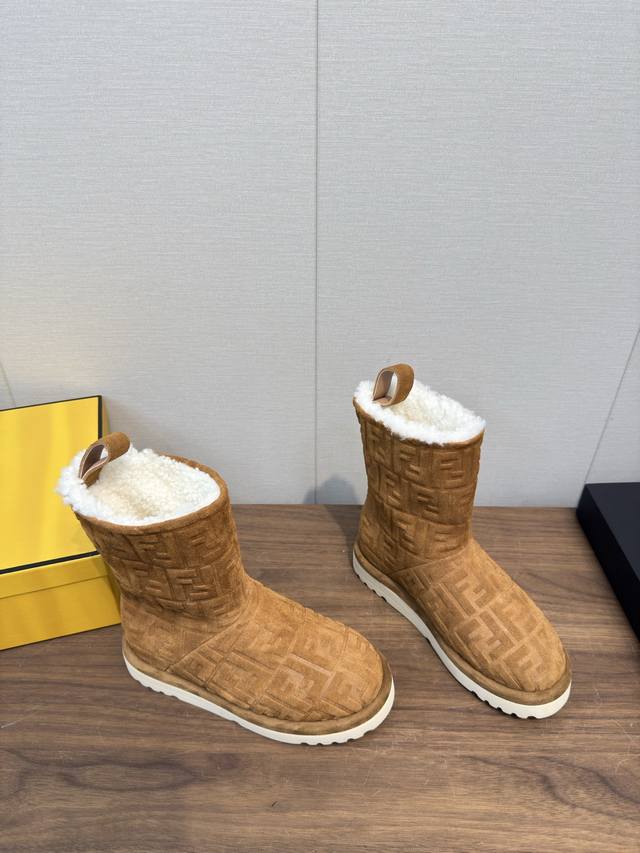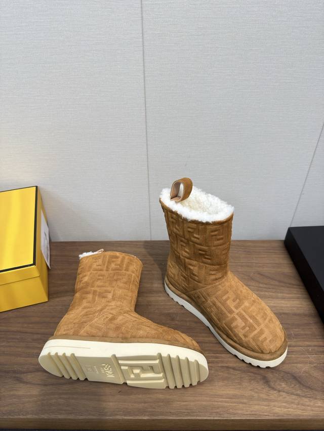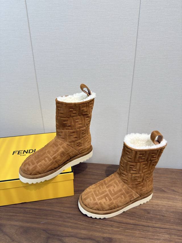 Fendi 2025 Autumn/Winter New Mid-Length Straight Boots, Snow Boots, Long Boots, Warm Wool Snow Boots. Fendi has released another beautiful boot! Made of top-grain cowhide with the classic Fendi monogram, embossed cowhide, full edge finishing, and a high-frequency embossed motorcycle design on the back. Very comfortable to wear, with a durable sheepskin lining and a 3.5cm thick outsole. The original design is excellent and makes your feet look incredibly slim! A must-have for winter! Sizes: 35-41, 40 and 41 are custom-made and non-refundable.