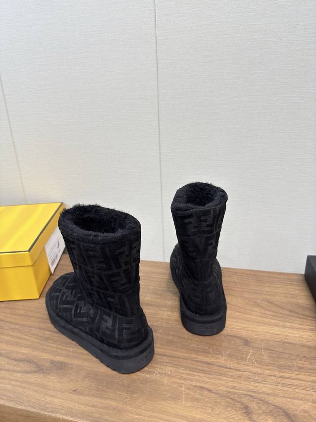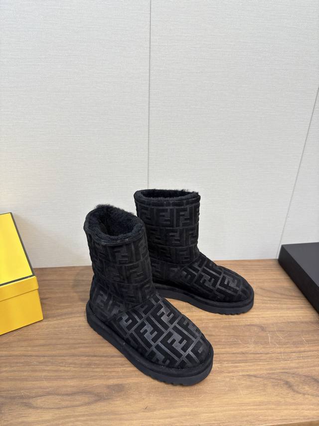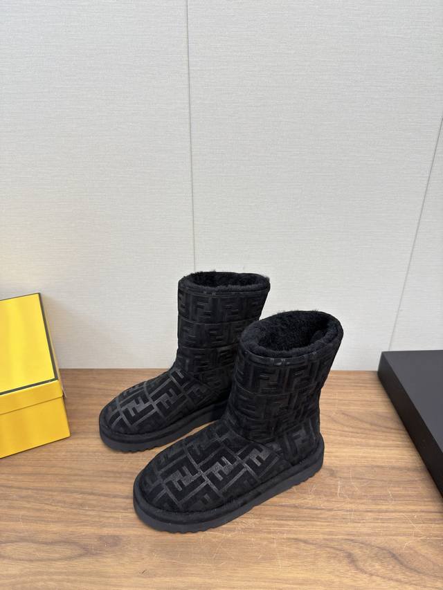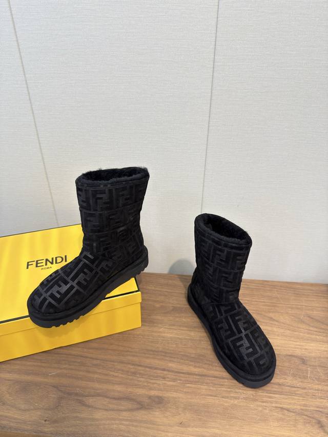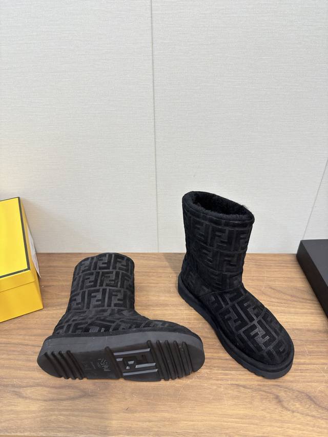 Fendi 2025 Autumn/Winter New Mid-Length Straight Boots, Snow Boots, Long Boots, Warm Wool Snow Boots. Fendi has released another beautiful boot! Made of top-grain cowhide with the classic Fendi monogram, embossed cowhide, full edge finishing, and a high-frequency embossed motorcycle design on the back. Very comfortable to wear, with a durable sheepskin lining and a 3.5cm thick outsole. The original design is excellent and makes your feet look incredibly slim! A must-have for winter! Sizes: 35-41, sizes 40 and 41 are custom-made and non-refundable.
