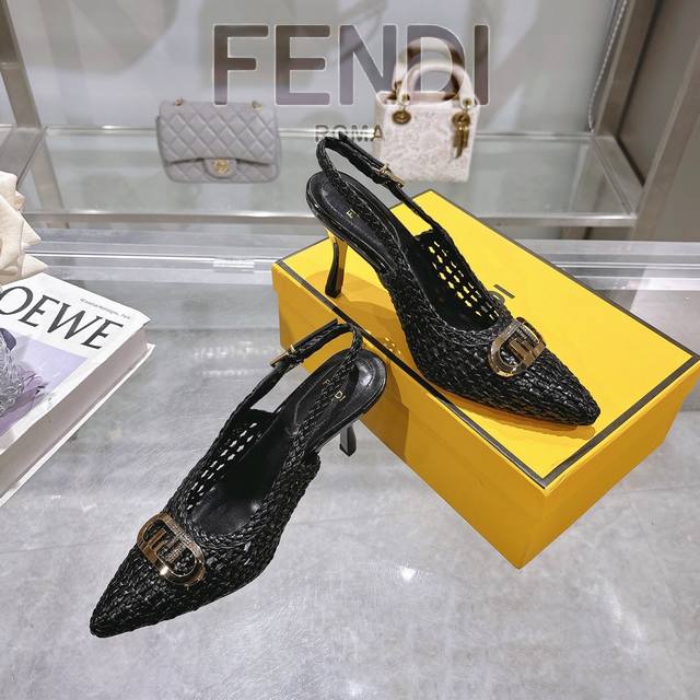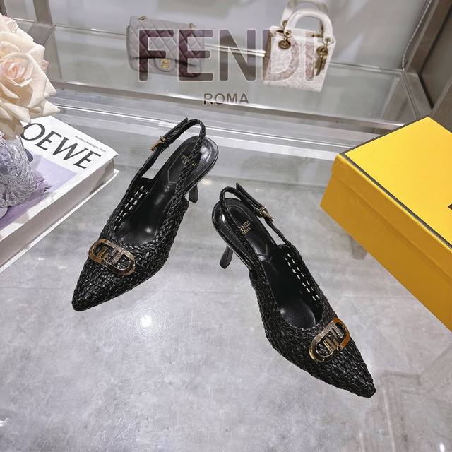 Fendi 2025 Woven Hollow-Out Lace-up Open-Heel Sandals