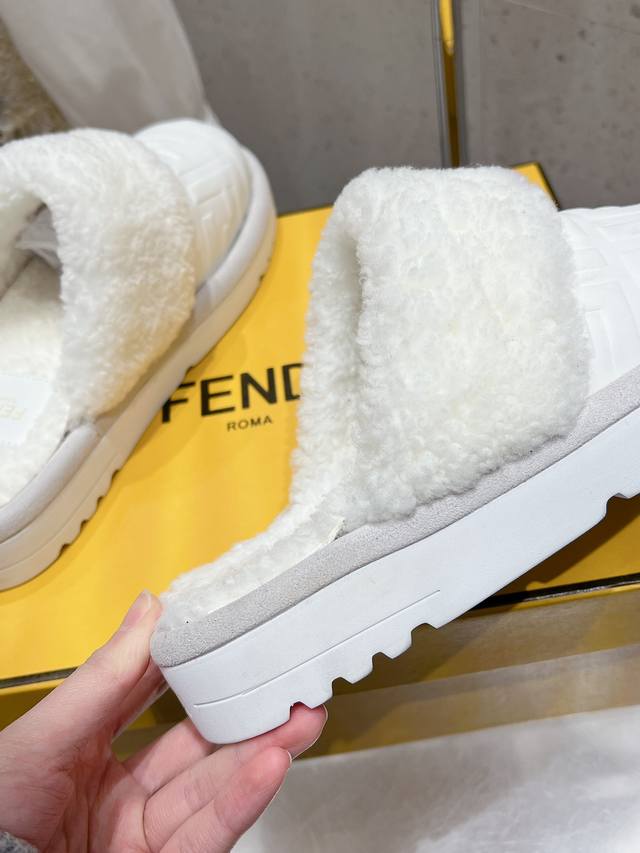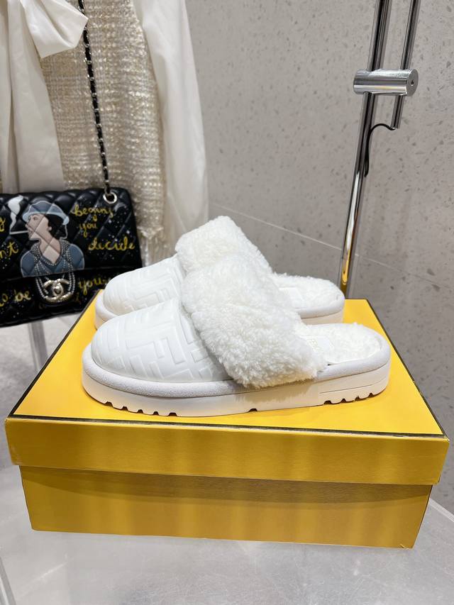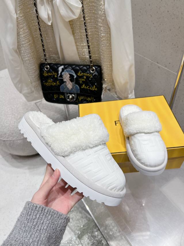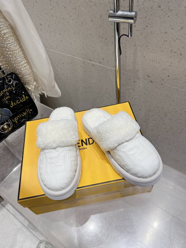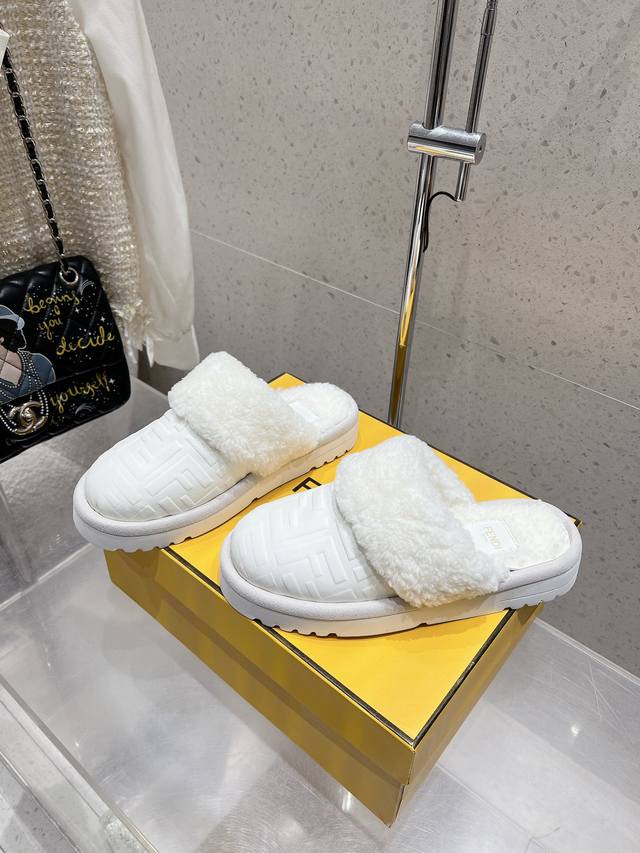 Fendi Autumn/Winter New Wool Slippers, Half-Slippers, Loafers. Made of pure wool and fur! Cute and warm! The high-density foam sole is soft and elastic, providing an incredibly light feel. The classic double-F embossed design on the upper ensures brand recognition. A must-have for winter! Available in mercerized suede, pure leather, and wool. Size: 35-40