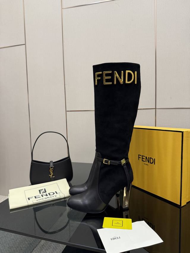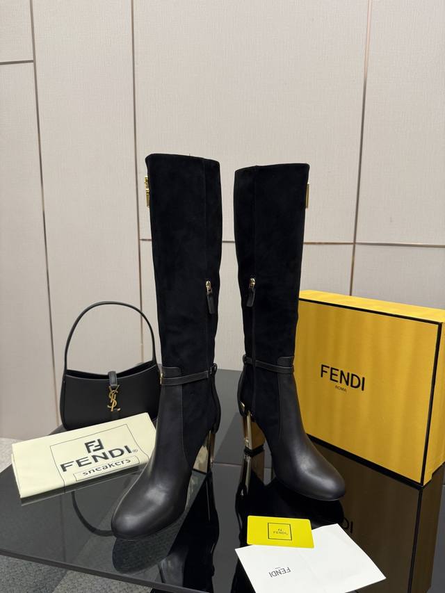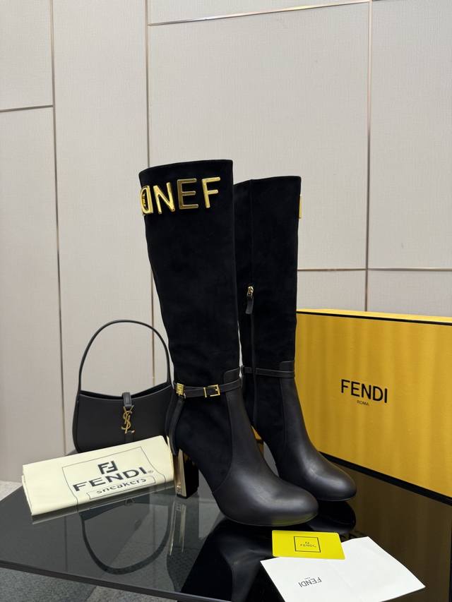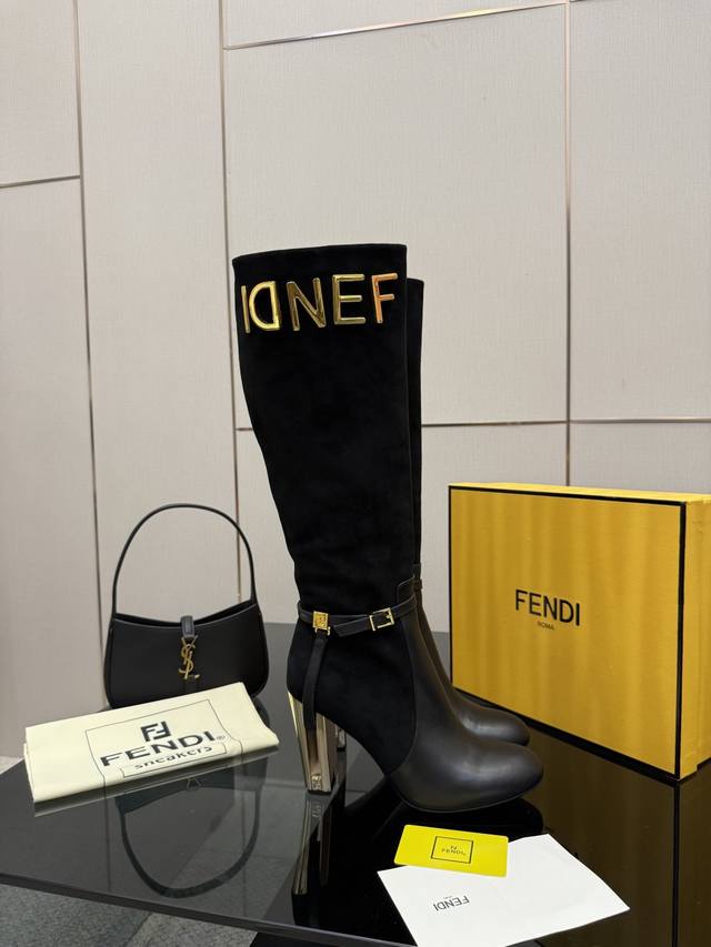 Fendi Delfina Leather High-Heeled Boots DDD Round-toe leather Delfina boots, featuring an Ff heel adorned with engraved details and a gold-tone Ff metal pattern. The lace-up closure is simple and clean, and the soft, delicate hardware around the foot adds a touch of sophistication. DDD Material: Cowhide and leather patchwork DDD Lining: Premium lambskin DDD Size: 35-40 41 Custom orders are non-refundable and non-exchangeable; payment is required before production DDD