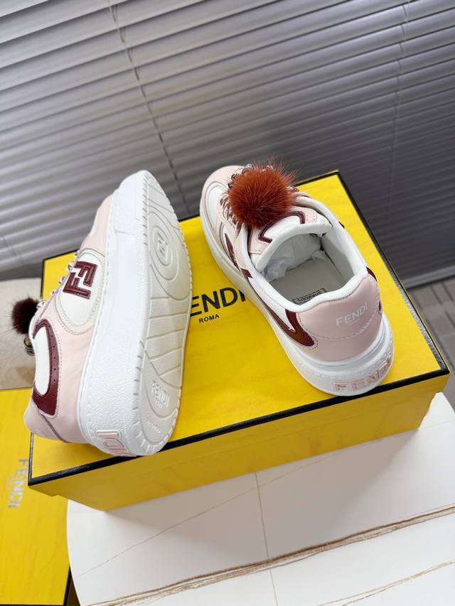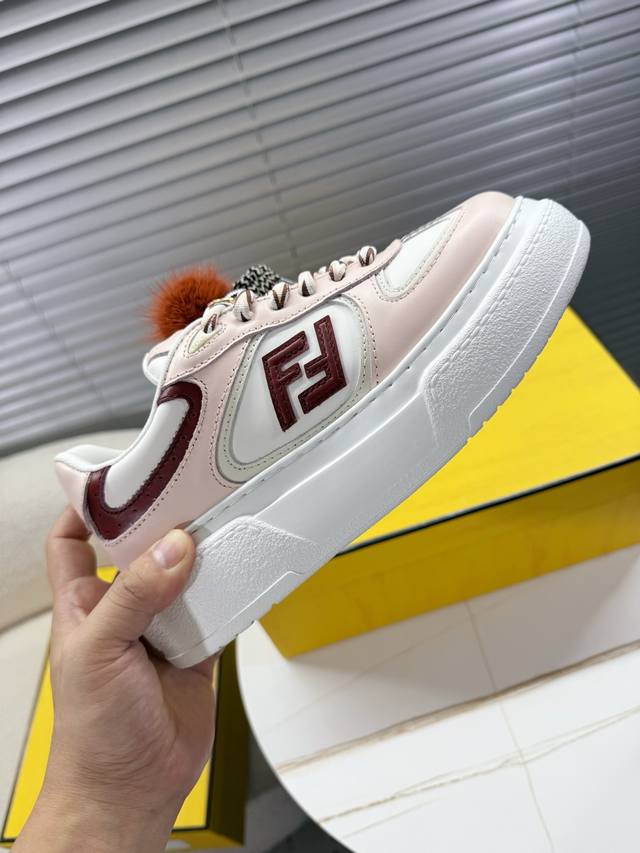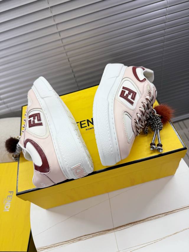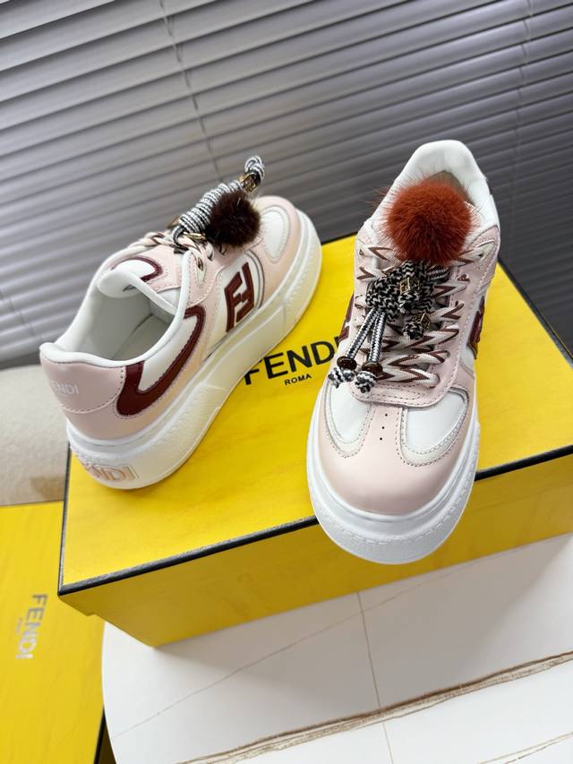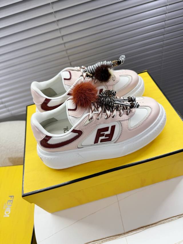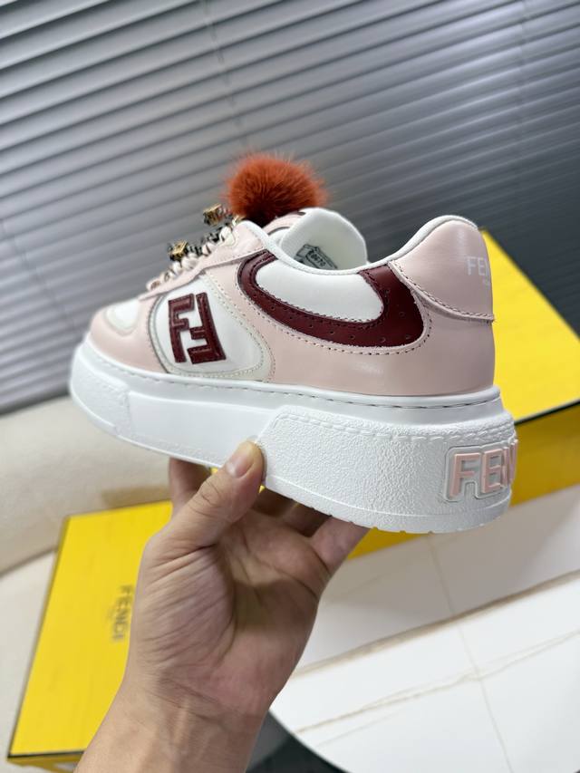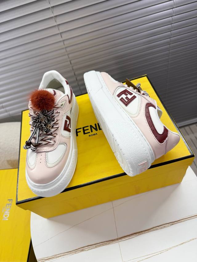 Fendi Match Latest Biscuit Shoes; Platform Shoes; Sneakers; Skate Shoes DDD Fendi Match platform sneakers, Ff's latest design elements, 5cm height increase to make legs look longer, paired with white socks for a youthful and energetic look, smooth shoe shape with detachable shoelaces and charms, flowing and dynamic when walking, stylish and good-looking DDD The upper is made of cowhide with color blocking, with a raised double F logo on the side, 5cm height-increasing PU foam outsole, and detachable stylish charms DDD Sizes 35 and 40 True to size DDD