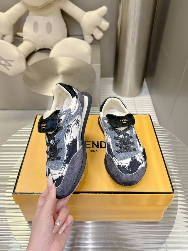 Fendi New Retro Style Flat Sports Casual Shoes for Couples DDD The upper is made of cow suede and leather, with an inherent distressed texture, giving it a high-end feel and a unique look; the tongue features the Fendi logo, a subtle detail that highlights the brand's identity. The round toe and Velcro closure make them easy to put on and take off and adaptable to different foot shapes; DDD The shoe has a slightly loose fit, highly forgiving of wide or thick feet, while also visually making feet appear smaller; the color scheme is a low-saturation retro color scheme, exuding a relaxed "old money" vibe. The sole is made of lightweight rubber, soft and bouncy, suitable for daily commutes or shopping; the style is compatible with retro, casual, and sophisticated styles, and goes well with jeans, suit pants, and dresses. DDD Upper: Cowhide DDD Lining: Sheepskin DDD Outsole: Original molded outsole DDD Height increase: 3cm DDD Size: 35-44 DDD
