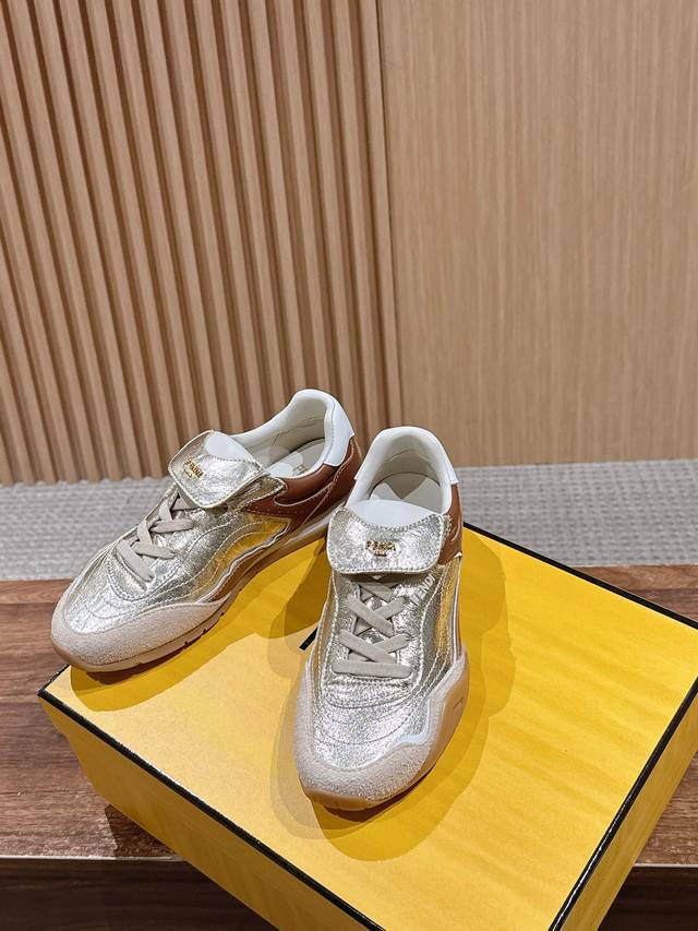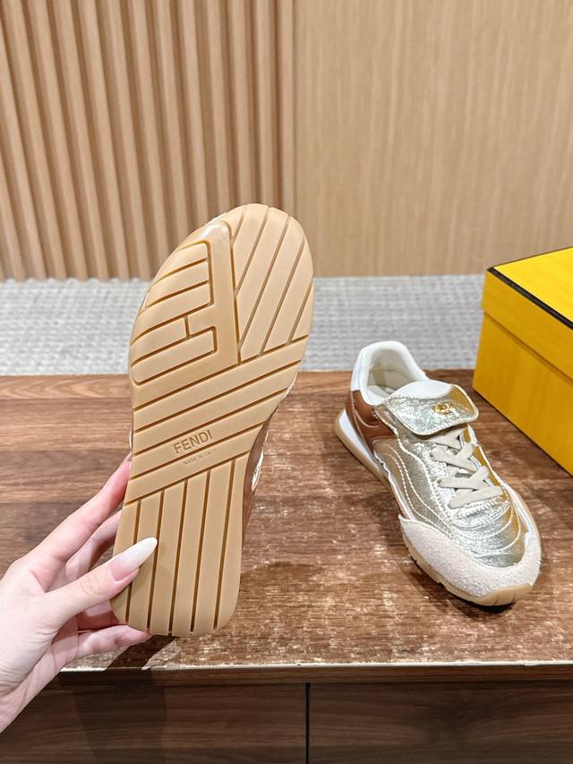 Fendi New Retro-Style Flat Casual Shoes DDD The upper is made of cow suede and leather, with a distressed texture, giving it a high-end feel and a unique look; the tongue features the Fendi logo, a subtle detail that highlights the brand's identity. The round toe and Velcro closure make them easy to put on and take off and adaptable to different foot shapes; DDD The shoe has a slightly loose fit, highly forgiving of wide or thick feet, while visually making feet appear smaller; the color scheme is a low-saturation retro colorway, exuding a relaxed "old-money" vibe. The lightweight rubber sole is soft, bouncy, and comfortable, suitable for daily commutes or shopping; the style is compatible with retro, casual, and sophisticated looks, pairing well with jeans, dresses, and skirts. DDD Upper: Cowhide DDD Lining: Sheepskin DDD Outsole: Original molded outsole DDD Height increase: 3cm DDD Size: 35-41 Sizes 40 and 41 are custom sizes and cannot be returned or exchanged DDD