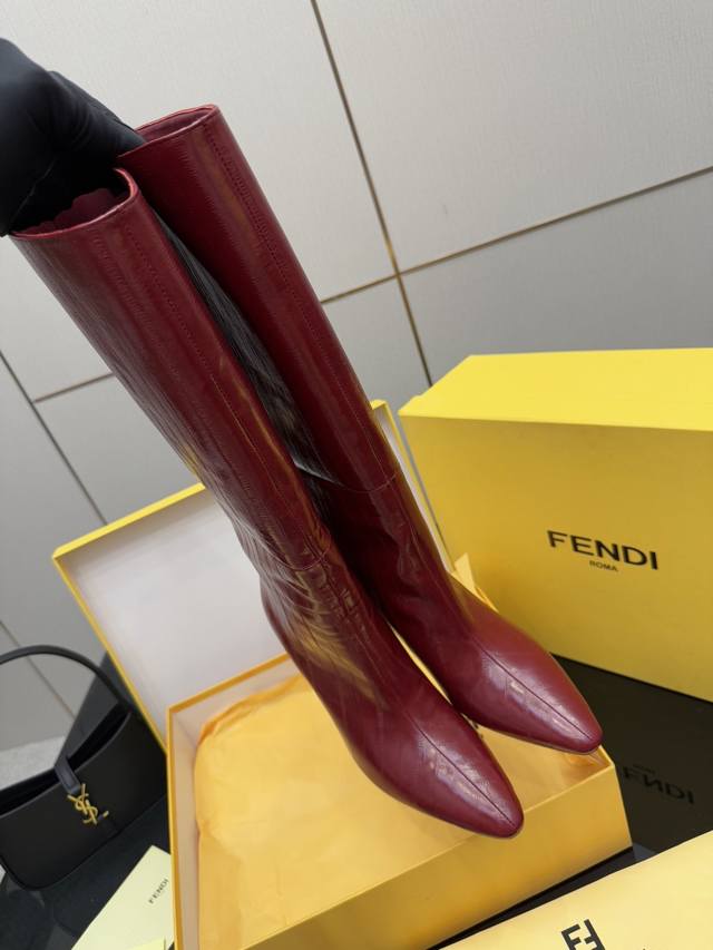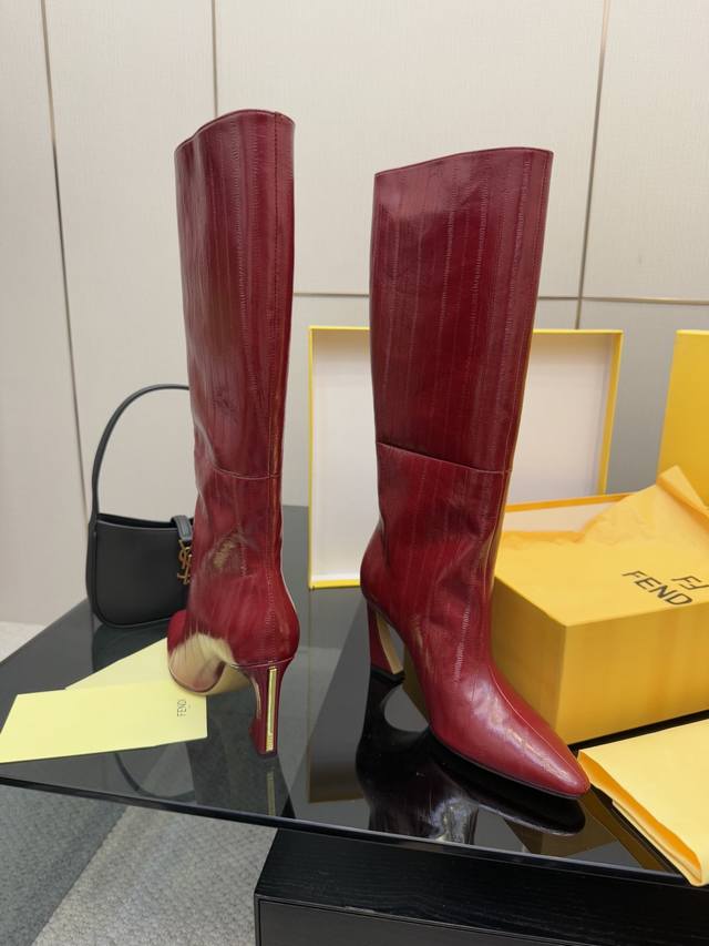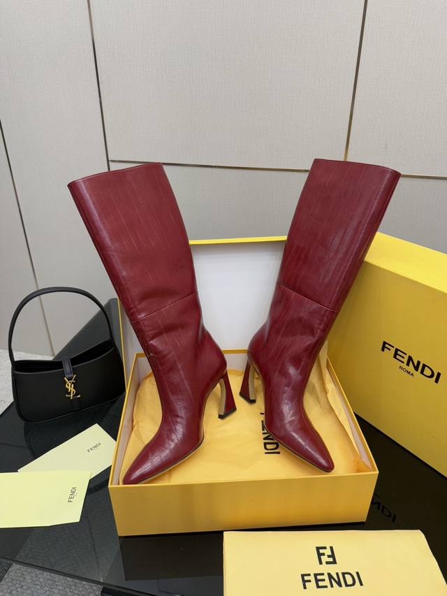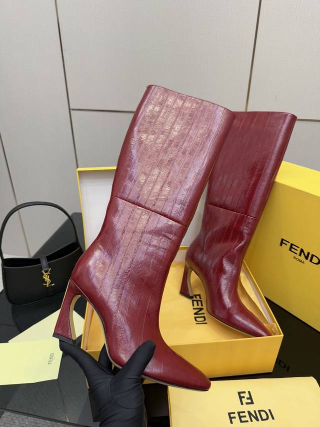 Fendi's 25Ss Summer Runway Featured Bestseller, New Arrival: Fendi's first high-heeled boots with a "curved heel and metal vertical stripe" decoration, a key piece in the Autumn/Winter collection.